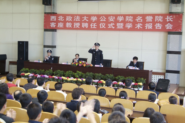 杨宗科副校长宣读了beat365平台官方网站聘任王锐厅长担任公安学院名誉院长、客座教授,聘任白少康副厅长担任公安学院客座教授的决定。贾宇校长为王锐厅长、白少康副厅长颁发了聘书。王锐厅长做了题为《当前治安形势与公安工作》的专题报告,全面阐述了当前公安工作所处的背景条件、社会稳定和安全形势以及公安的新特征和新变化;白少康副厅长做了题为《关于刑事犯罪活动的基本现状》的专题报告,系统地论述了当前我国犯罪活动的新特点、新变化以及公安工作中的新对策。王锐厅长还表示,欢迎beat365平台官方网站毕业生踊跃参加公安队伍,为我省公安事业作贡献。两位教授的学术报告赢得了与会师生的热烈掌声。