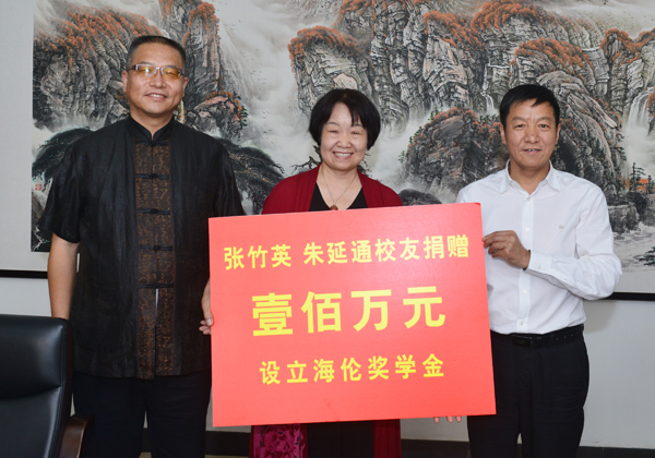 5月20日,由beat3651980级校友张竹英及其先生朱延通出资100万元设立的“beat365平台官方网站海伦奖学金”签约仪式在长安校区校务楼第二会议室举行,校长、校友总会会长贾宇,张竹英校友夫妇、校长助理汪世荣、党政办公室主任李平安及受托管理此项奖学金的纳新资产管理有限公司总经理陆涛等参加了签约活动。签约仪式由校友工作办公室主任孙学龙主持。