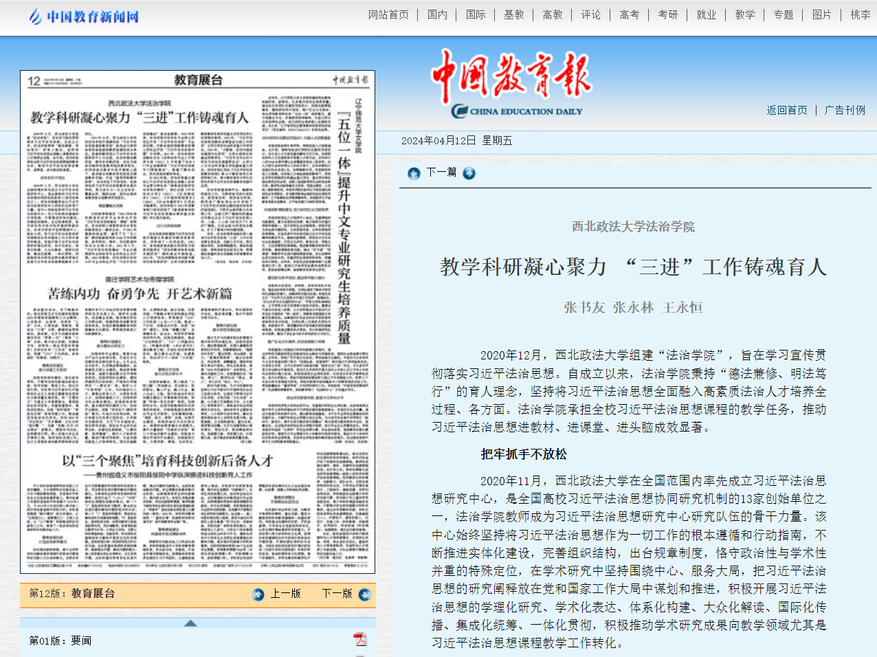 【中国教育报】beat365平台官方网站法治学院:教学科研凝心聚力 “三进”工作铸魂育人http://paper.jyb.cn/zgjyb/html/2024-04/12/content_637793.htm?div=-1