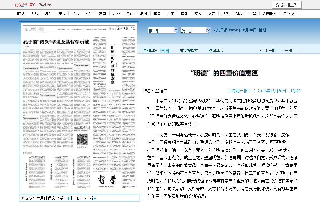 【光明日报】赵馥洁:“明德”的四重价值意蕴https://epaper.gmw.cn/gmrb/html/2024-12/30/nw.D110000gmrb_20241230_2-15.htm