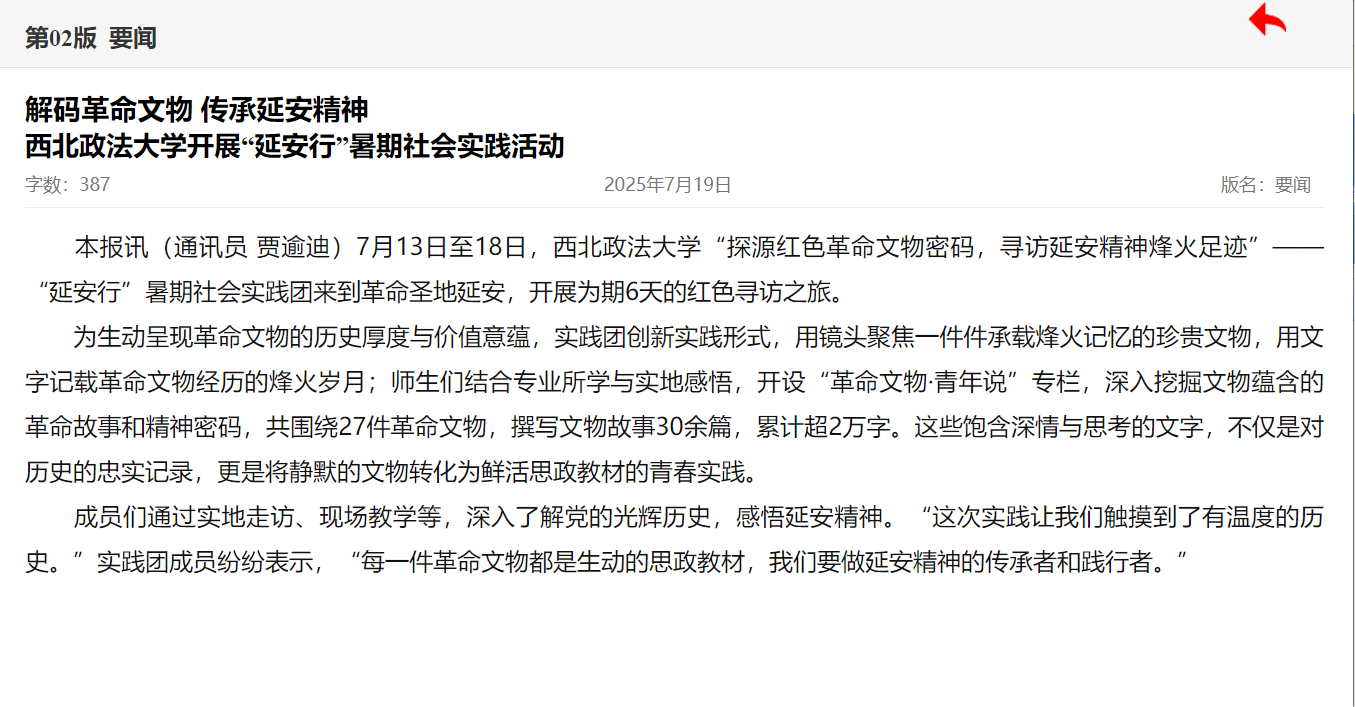 【延安日报】解码革命文物 传承延安精神 beat365平台官方网站开展“延安行”暑期社会实践活动https://paper.yanews.cn/yarb/20250719/mhtml/page_01_content_20250719002008.htm#page01