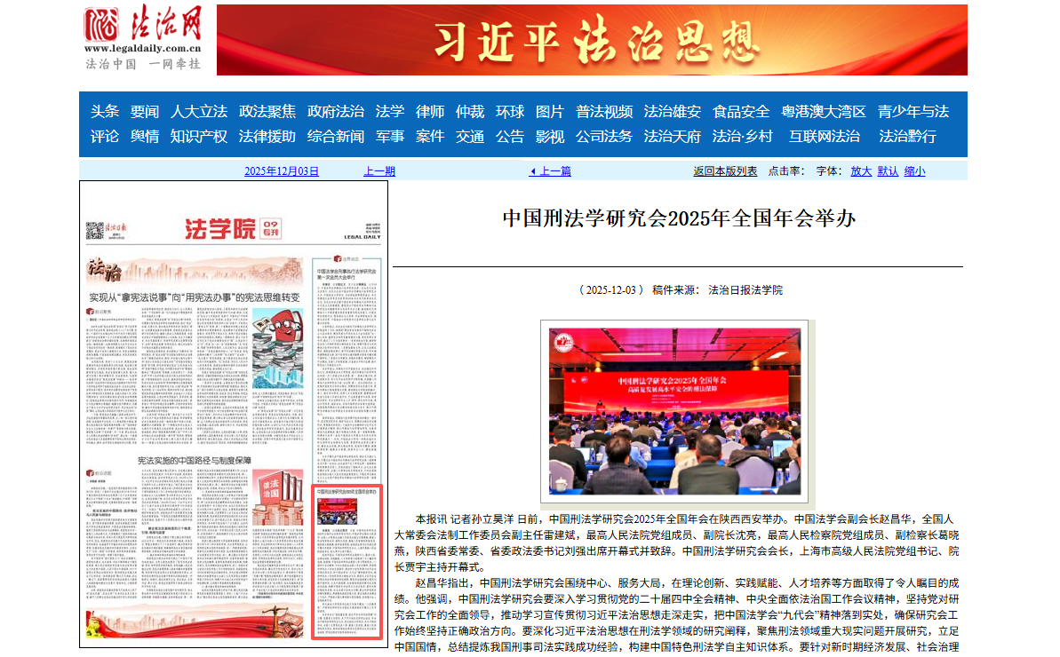 【法治日报】中国刑法学研究会2025年全国年会举办http://epaper.legaldaily.com.cn/fzrb/content/20251203/Articel09005GN.htm?spm=zm1012-001.0.0.4.VdjvVb