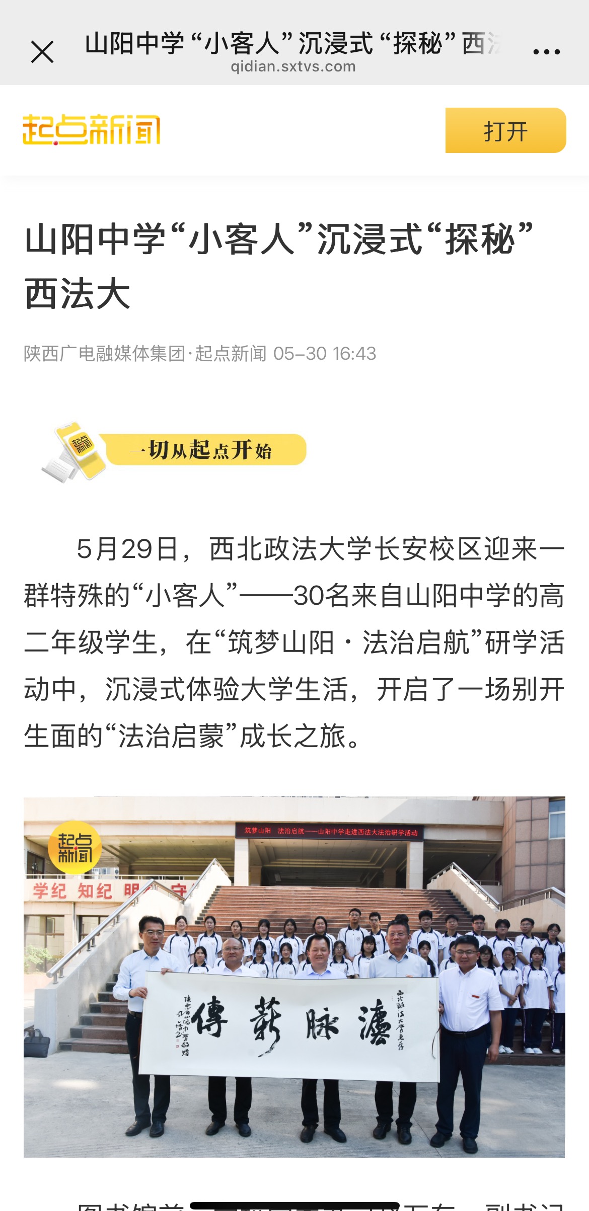 【起点新闻】山阳中学“小客人”沉浸式“探秘”西法大 https://qidian.sxtvs.com/timing/share/content/10601081