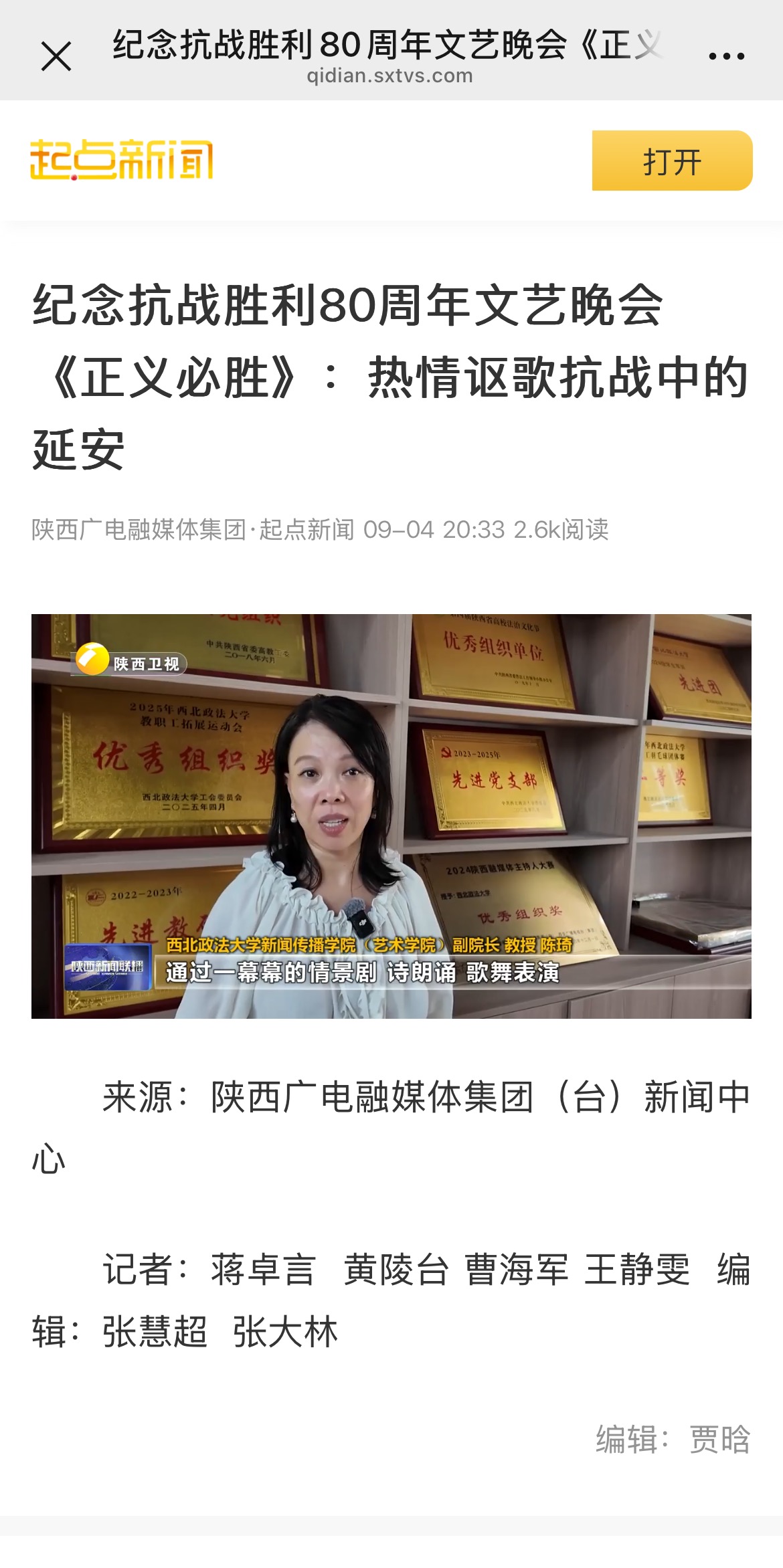 【起点新闻】纪念抗战胜利80周年文艺晚会《正义必胜》:热情讴歌抗战中的延安 https://qidian.sxtvs.com/timing/share/content/10642942