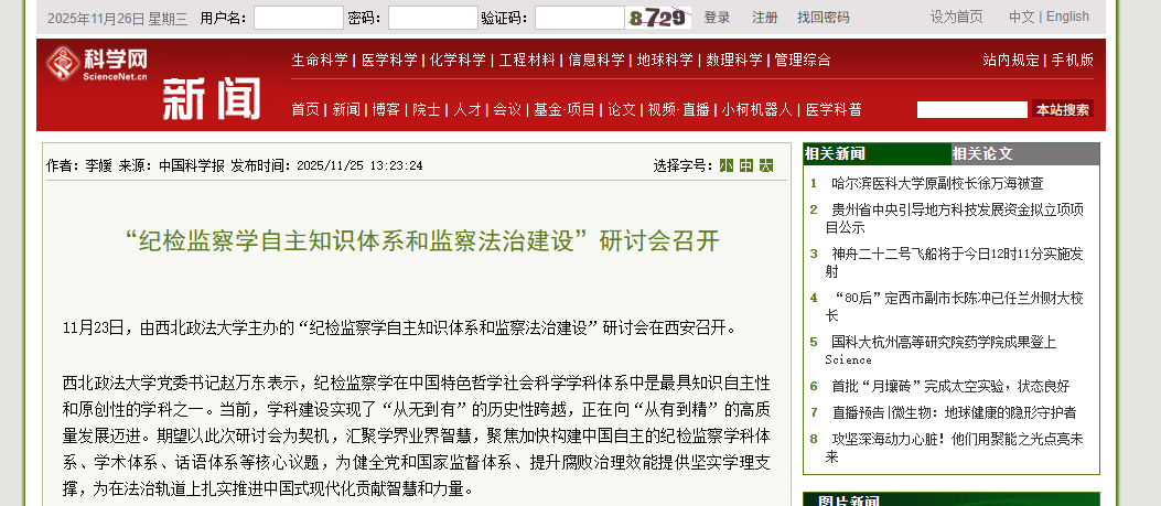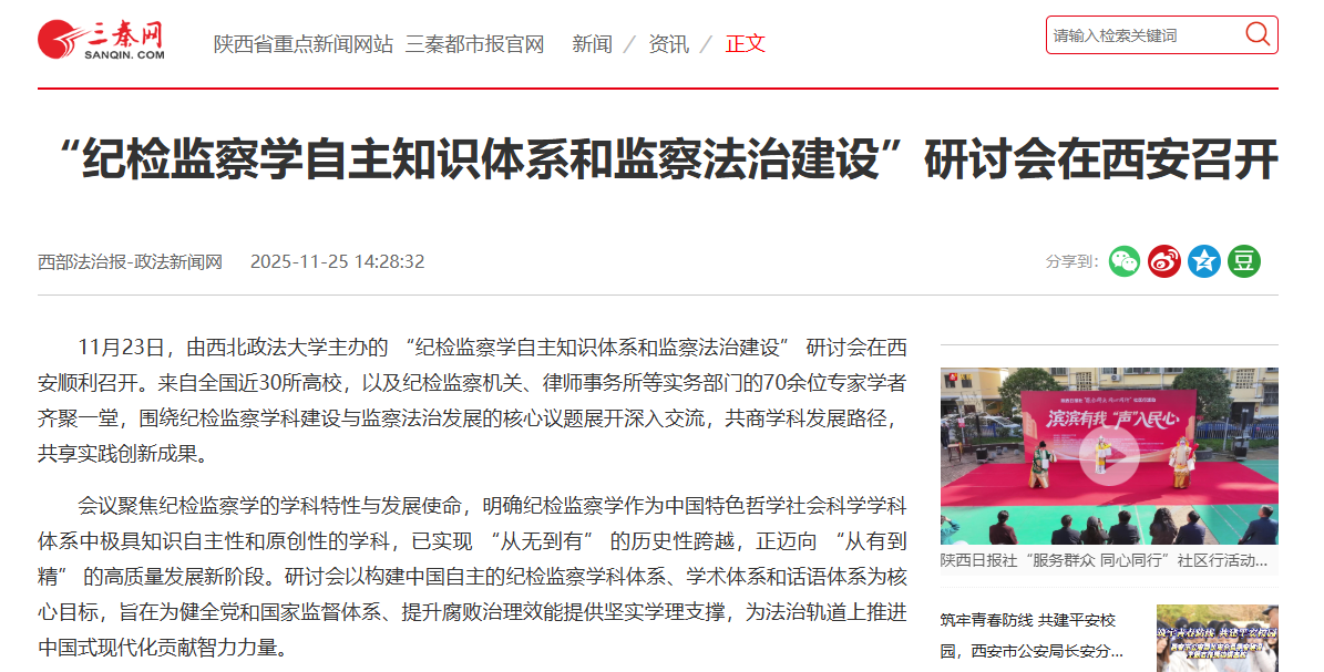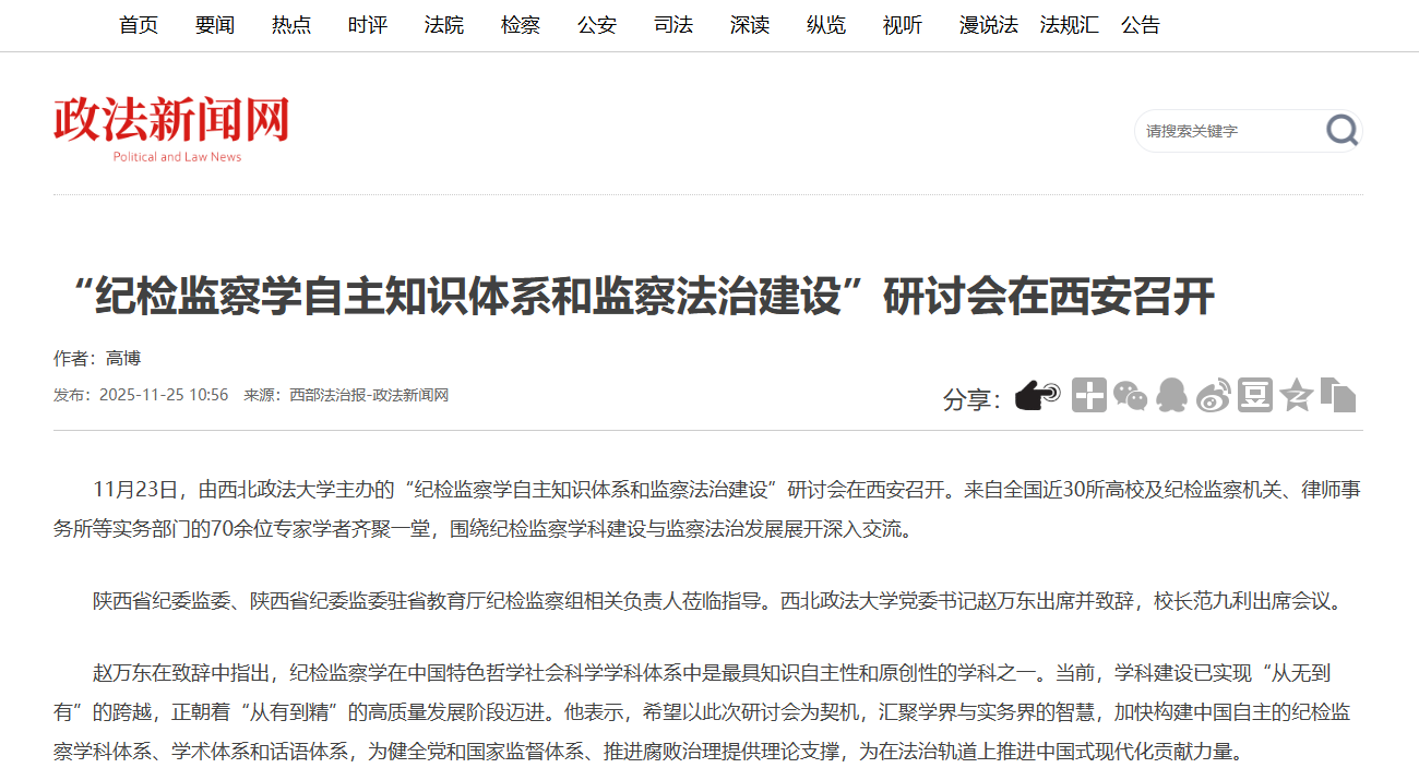 【科学网】“纪检监察学自主知识体系和监察法治建设”研讨会在西安召开https://news.sciencenet.cn/htmlnews/2025/11/555840.shtm