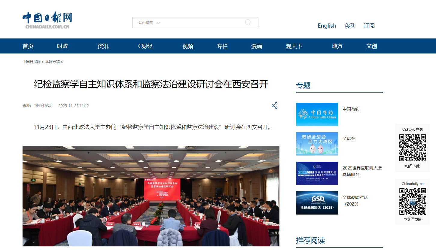 【中国日报网】“纪检监察学自主知识体系和监察法治建设”研讨会在西安召开https://shx.chinadaily.com.cn/a/202511/25/WS69251ebaa310942cc499328a.html