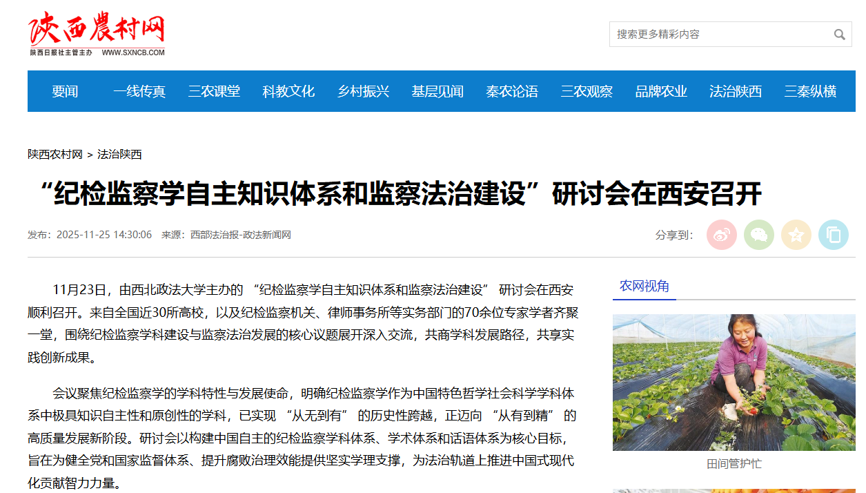 【陕西农村网】“纪检监察学自主知识体系和监察法治建设”研讨会在西安召开 https://www.sxncb.com/2025-11/25/content_11424911.html