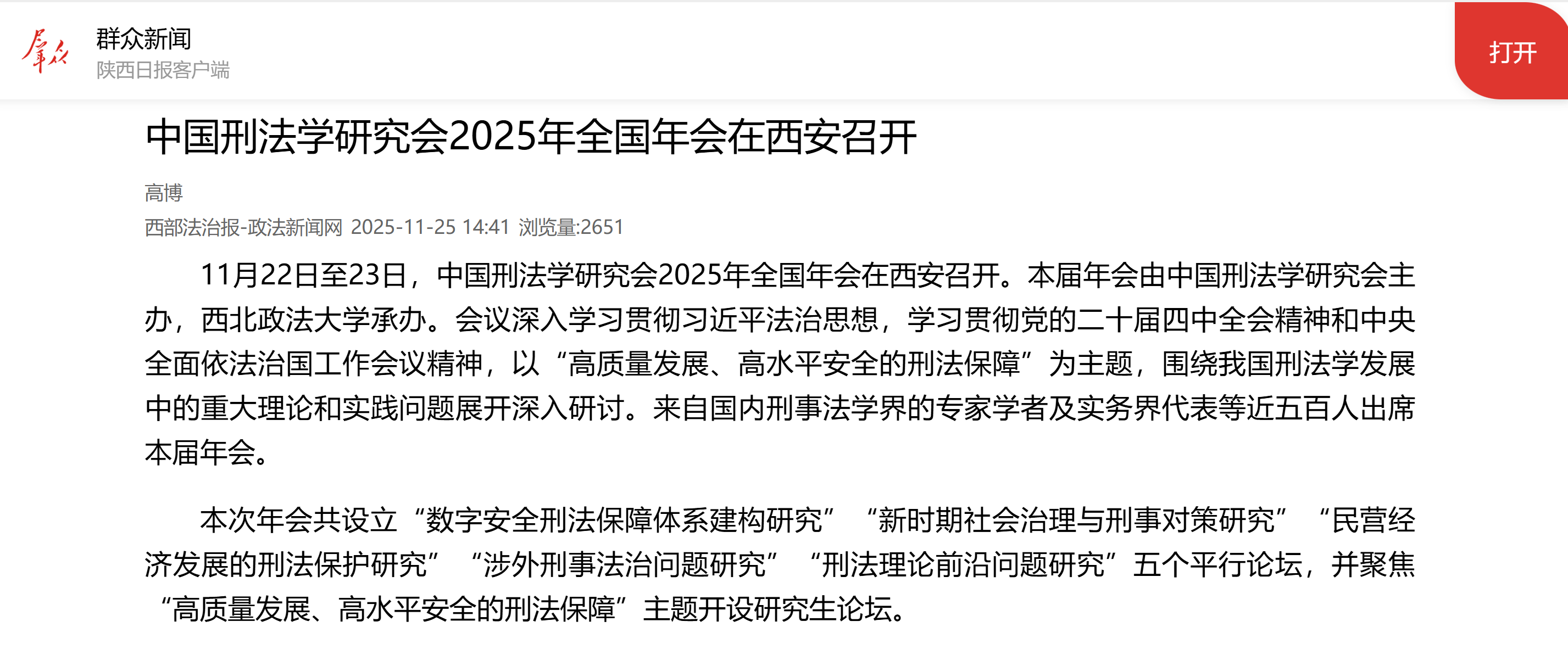 【政法新闻网】中国刑法学研究会2025年全国年会在西安召开https://www.xbfzb.com/2025-11/25/content_11424286.html