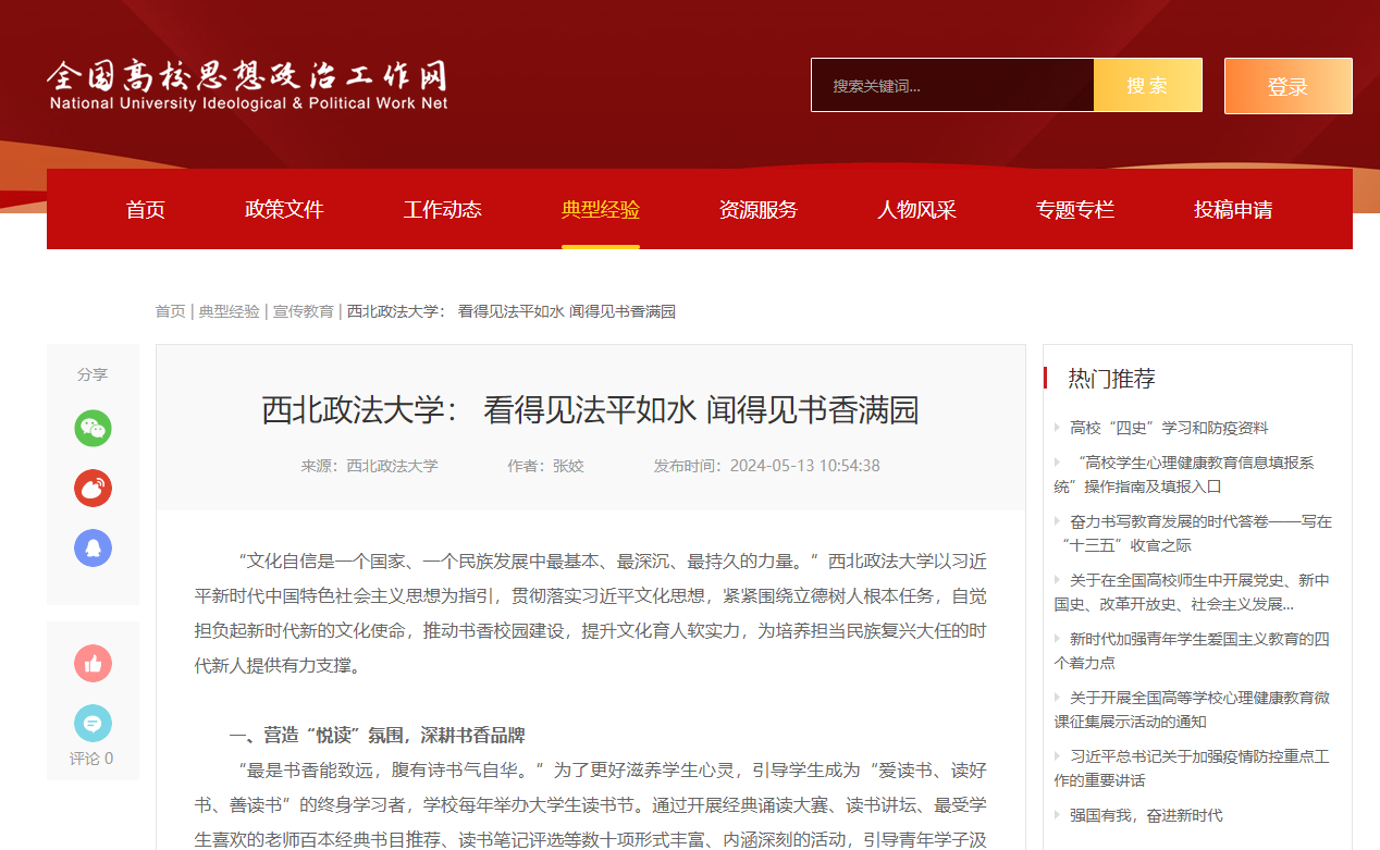 【全国高校思政工作网】【中国周刊网】看得见法平如水 闻得见书香满园——beat365平台官方网站以书香校园建设提升文化育人软实力https://www.sizhengwang.cn/a/dxjy_sxjy/240513/1780083.shtml