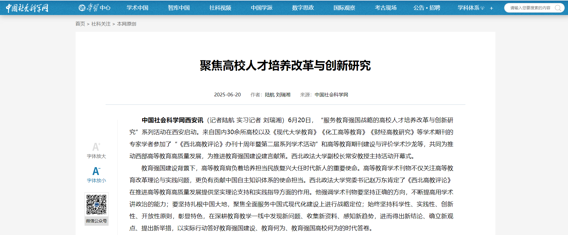 【中国社会科学网】聚焦高校人才培养改革与创新研究 https://www.cssn.cn/skgz/bwyc/202506/t20250620_5882636.shtml