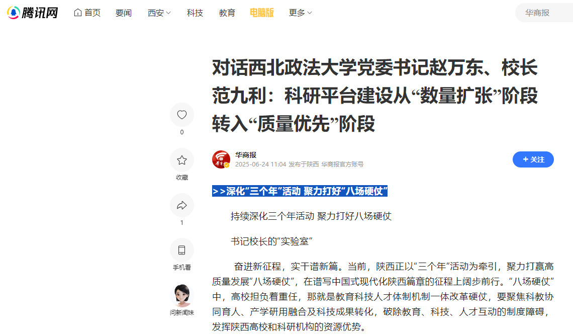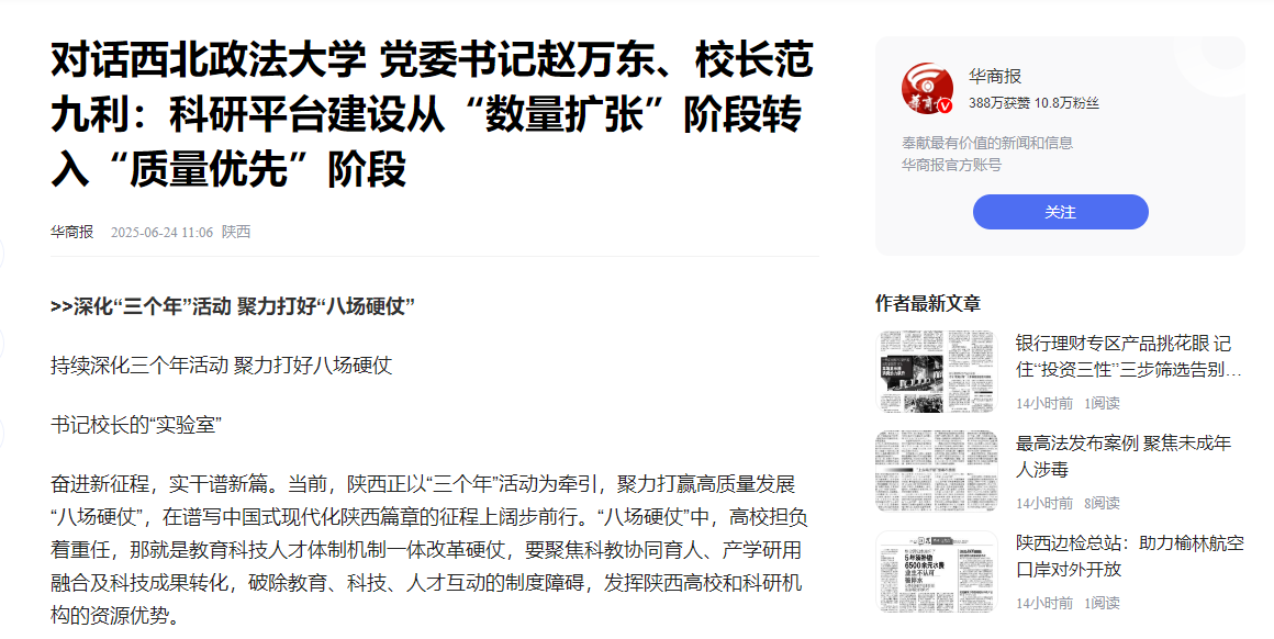 【腾讯网】对话beat365平台官方网站党委书记赵万东、校长范九利:科研平台建设从“数量扩张”阶段转入“质量优先”阶段 https://news.qq.com/rain/a/20250624A03QFX00?shareto=wx&devid=4310B8B0-D43D-4387-9028-664DEBD5FAD7&qimei=f93ed0e96a5c1aa8157c4be800001711580d&qs_signature=0002015504032b80708184950005b5aa4ab0722f230d3b490111dec05084919d15ab63a3df781dfe18b5ff620000000000000000&appver=18.5_qqnews_7.5.11&QIMEI36=fake4310b8b0d43d43879028664debd5fad7&suid=&media_id=