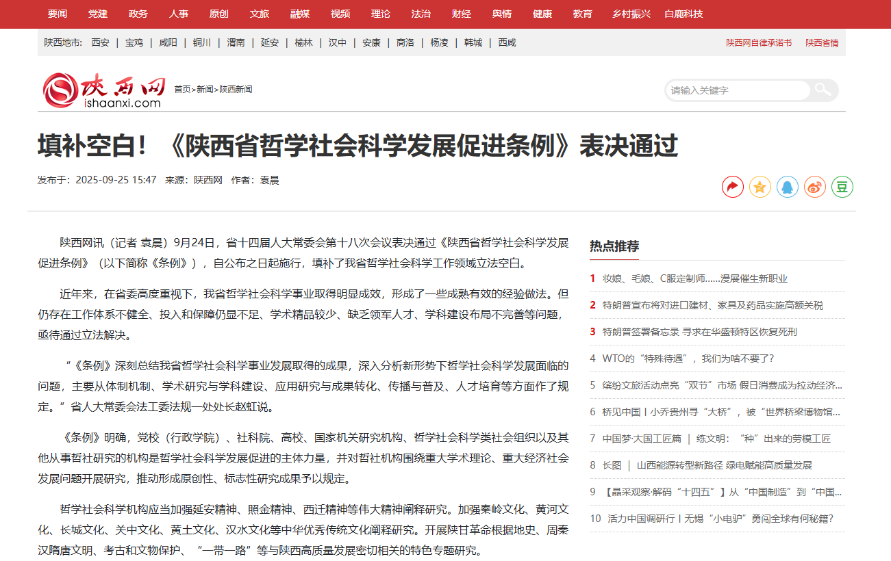 【陕西网】填补空白!《陕西省哲学社会科学发展促进条例》表决通过 https://www.ishaanxi.com/c/2025/0925/3520698.shtml