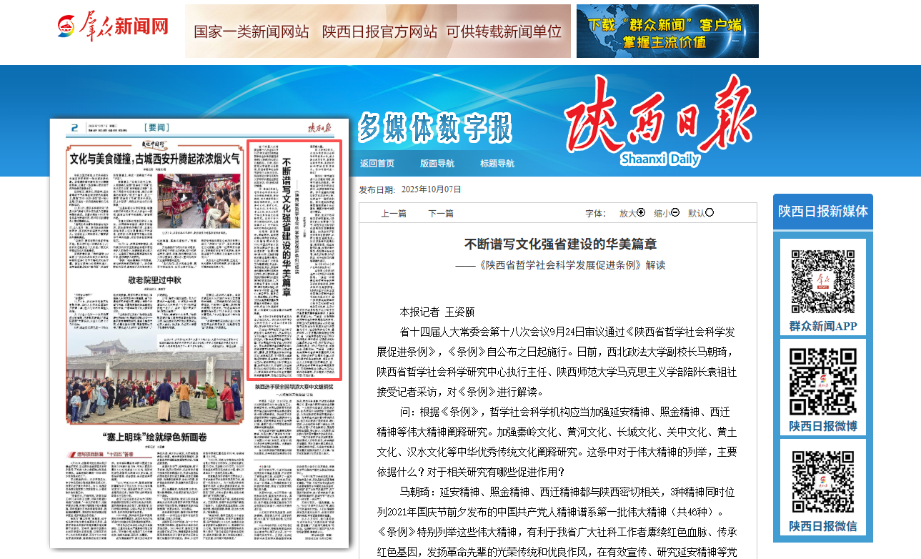 【群众新闻网】不断谱写文化强省建设的华美篇章——《陕西省哲学社会科学发展促进条例》解读 https://esb.sxdaily.com.cn/pc/content/202510/07/content_921074.html