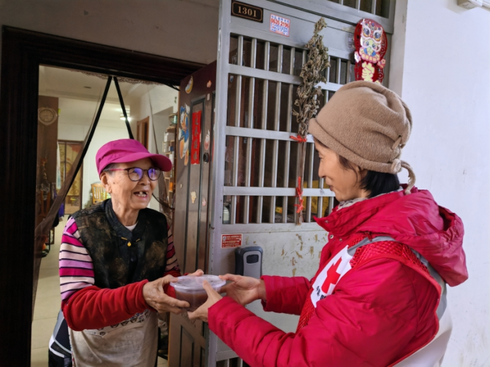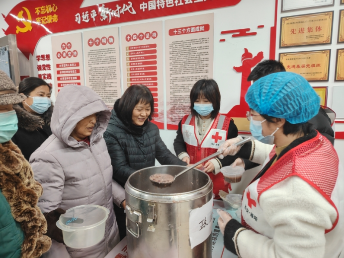 与此同时,社区工作者和志愿者还专程为社区独居、行动不便老年人上门送腊八粥,敲开一扇扇家门,递上一碗碗热粥,送上一声声关怀,让无法到场的他们也能及时品尝到传统美食,感受到社区大家庭的温暖。