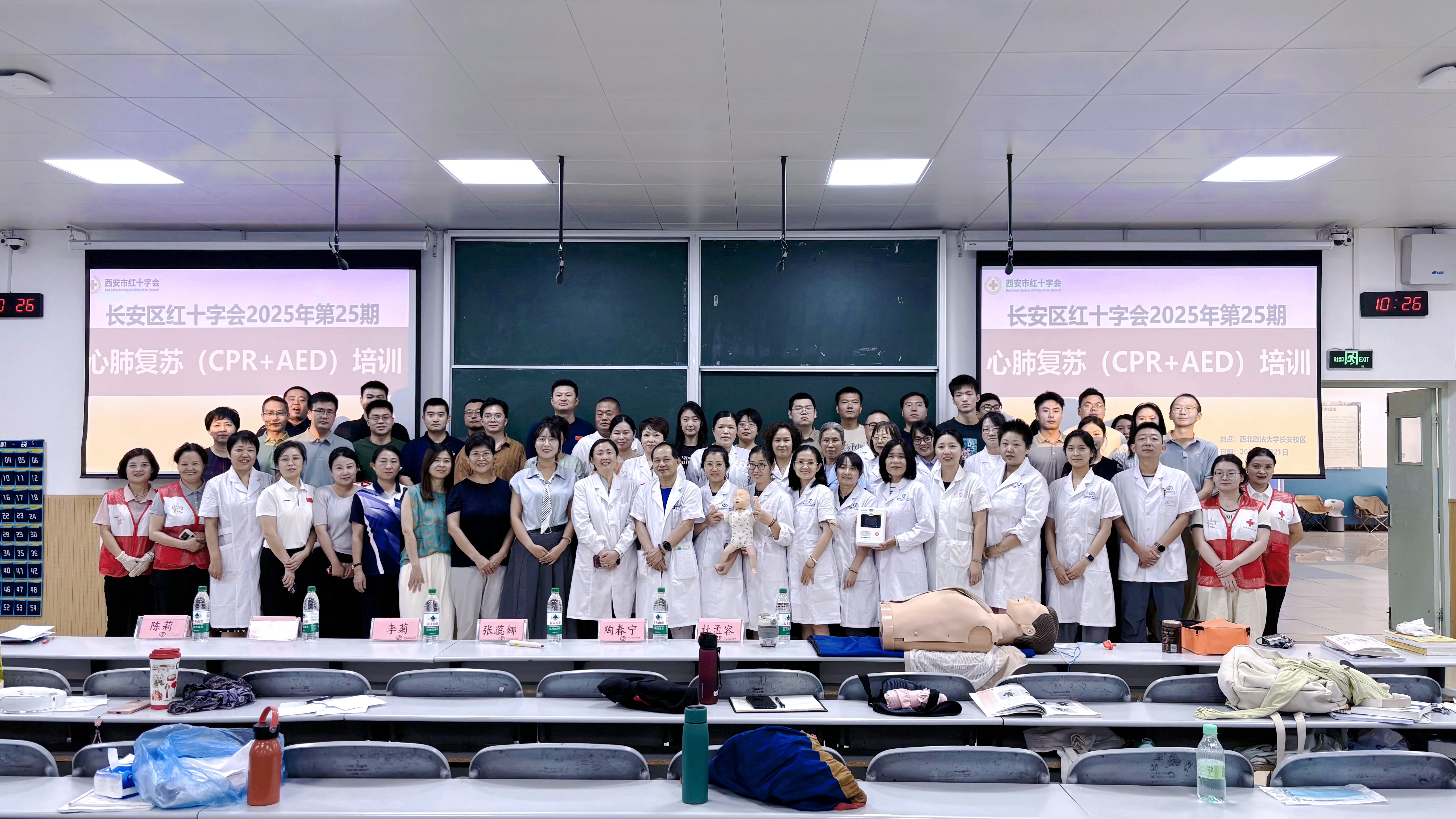 为深入实施大学生急救教育行动计划,加强学校急救教育育人体系,全面提升师生急救素养,8月21日上午,校门诊部联合长安区红十字会在长安校区天平楼AJ13教室举办暑期应急救护培训活动。长安区红十字会会长李菊带队授课,门诊部副主任韩英娥主持活动。学工部(学生处)、研工部、体育部及门诊部等部门的55名教职工代表参加了培训。