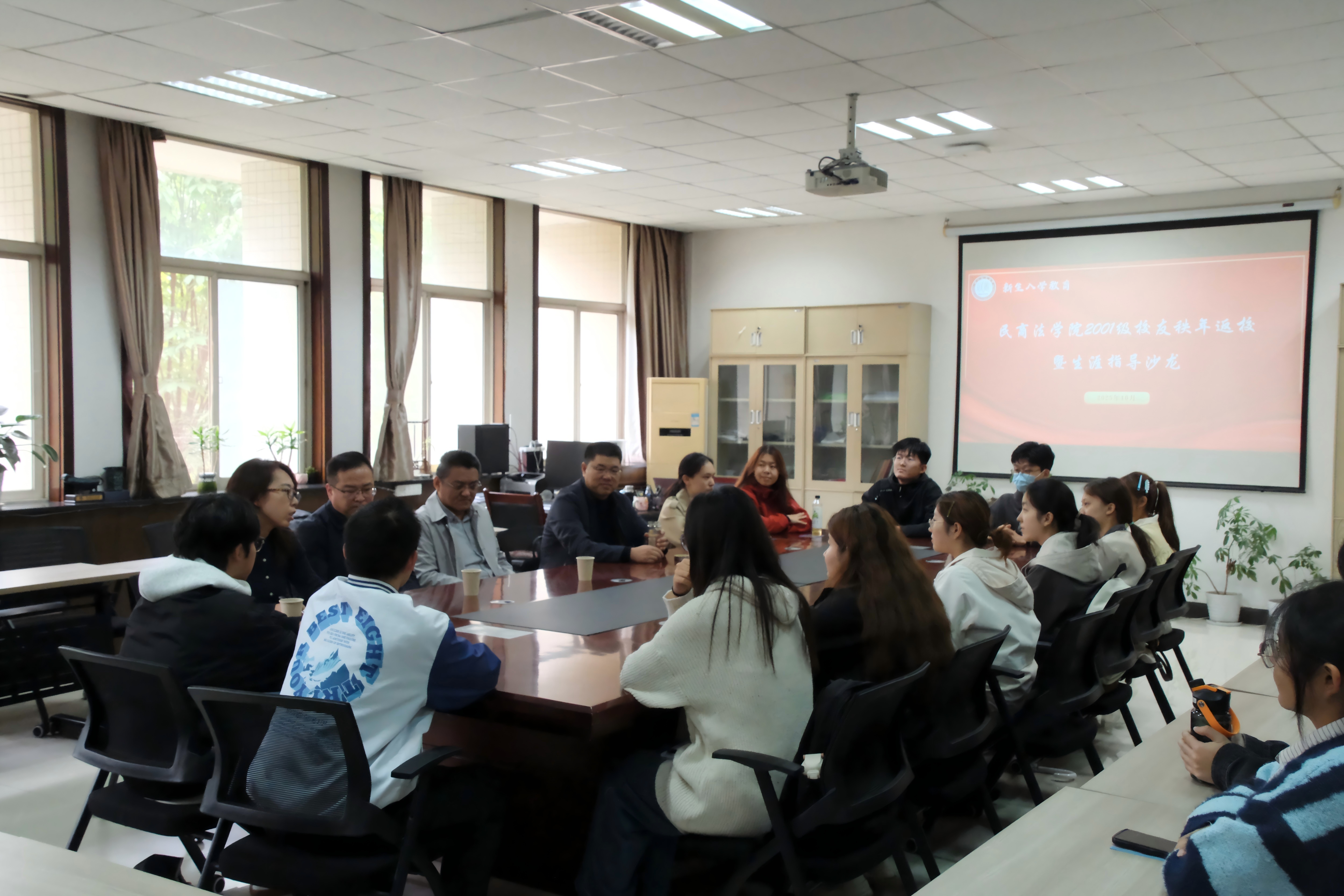 10月17日,民商法学院在资料室举办校友职业生涯规划指导沙龙活动。本次活动由上海兰迪律师事务所民商事争议解决部主任、高级合伙人王广灏律师,陕西省律师行业优秀共产党员、宝伦律师事务所康安律师主讲,公安学院(公共安全法)学院党委书记、原法学一系2001级辅导员李永宁、民商法学院党委书记朱茂、2025级学生代表参加,民商法学院党委副书记、副院长上官亚敏主持。