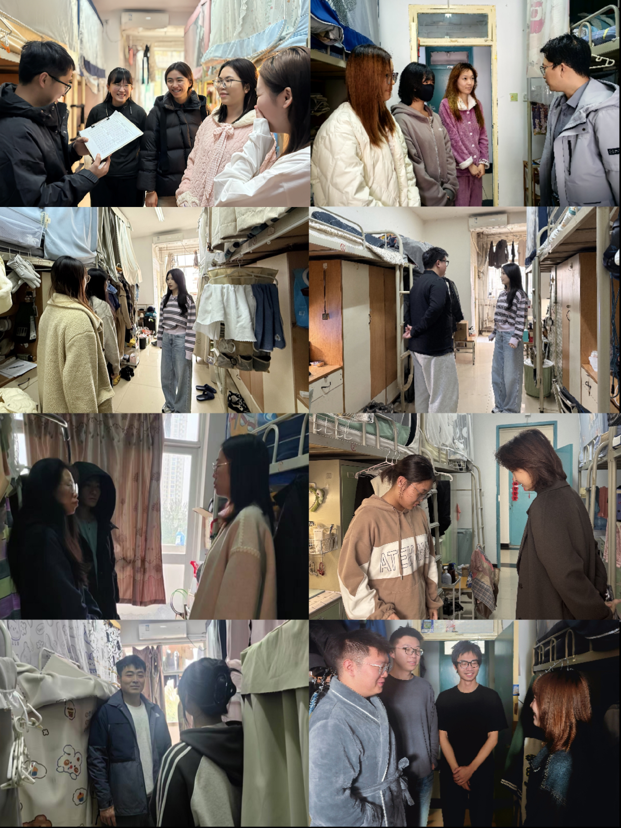 走访期间,老师们细致查看环境卫生状况,对宿舍内是否存在违规电器等问题进行全面排查,结合近期校园安全工作重点,提醒同学们注意消防安全,询问同学们的课程学习进度、专业实践开展情况,倾听大家在生活中遇到的困难与困惑,叮嘱同学们换季时节注意添衣保暖、保持规律作息,引导大家共同维护宿舍整洁环境,营造互助友爱的居住氛围。