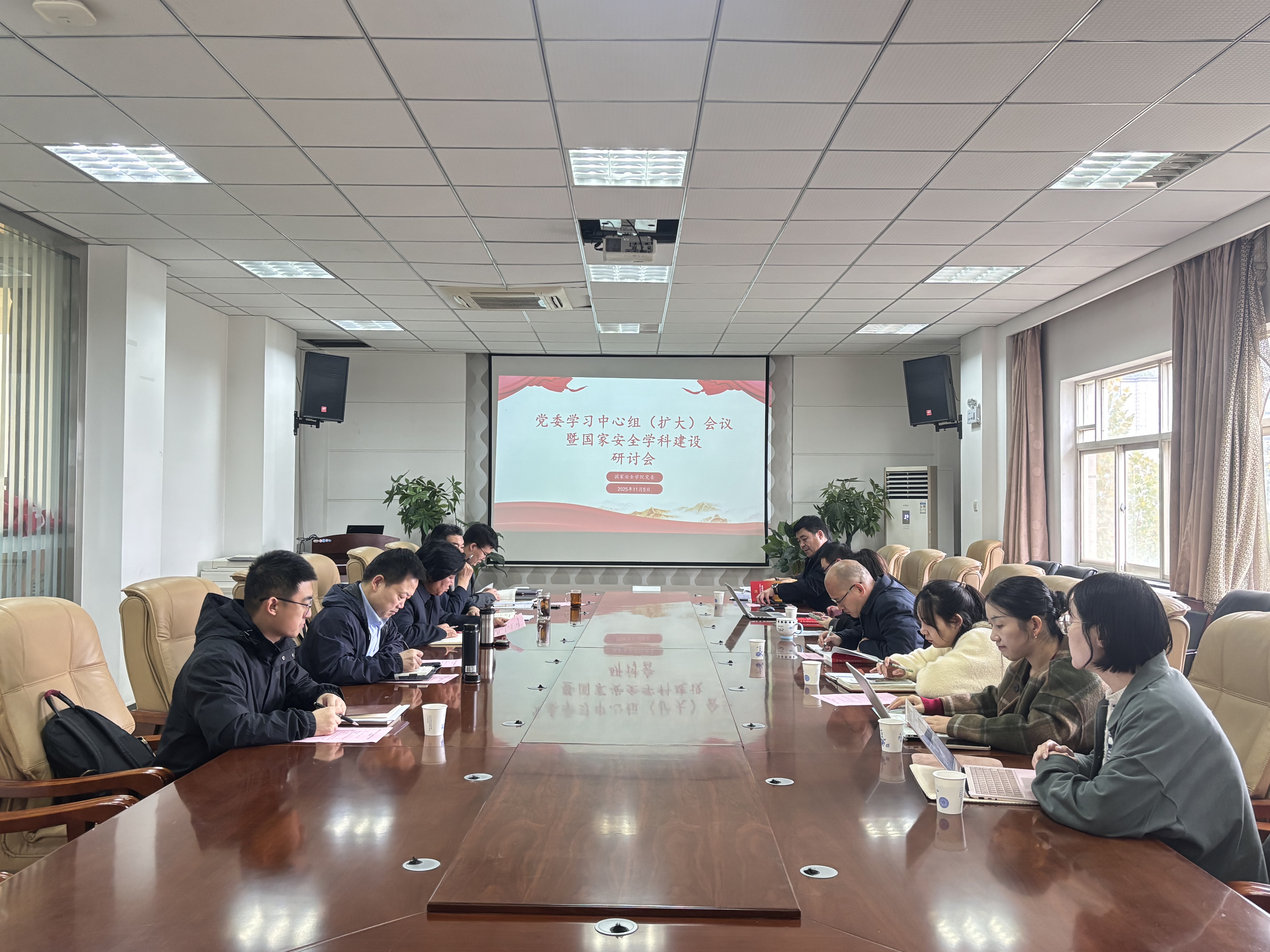 11月6日,国家安全学院党委召开理论学习中心组(扩大)会议暨国家安全学科建设研讨会。中心组成员、院长助理、教研室主任、党支部书记、科级干部、特邀教师代表参加。学院党委书记李政敏主持会议。
