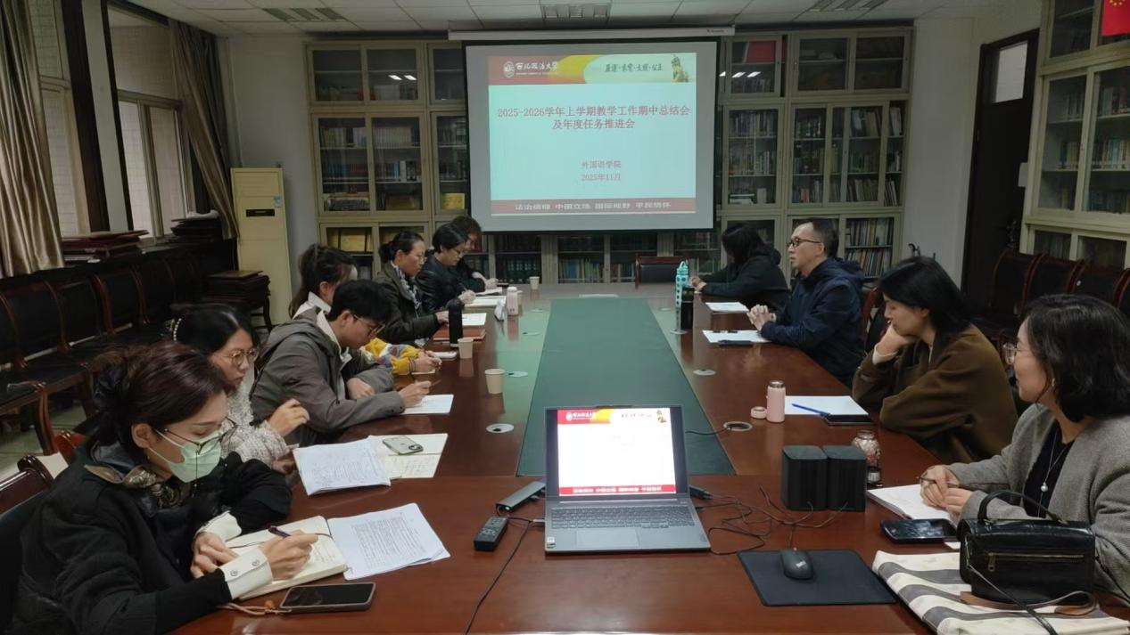 为夯实人才培养根基,落实学校审核评估整改工作要求,确保教学工作与年度任务高效有序推进,11月6日,外国语学院召开教学工作期中总结会。学院领导班子成员,各系、教研室负责人及教务秘书参加会议。会议由副院长陈河主持。