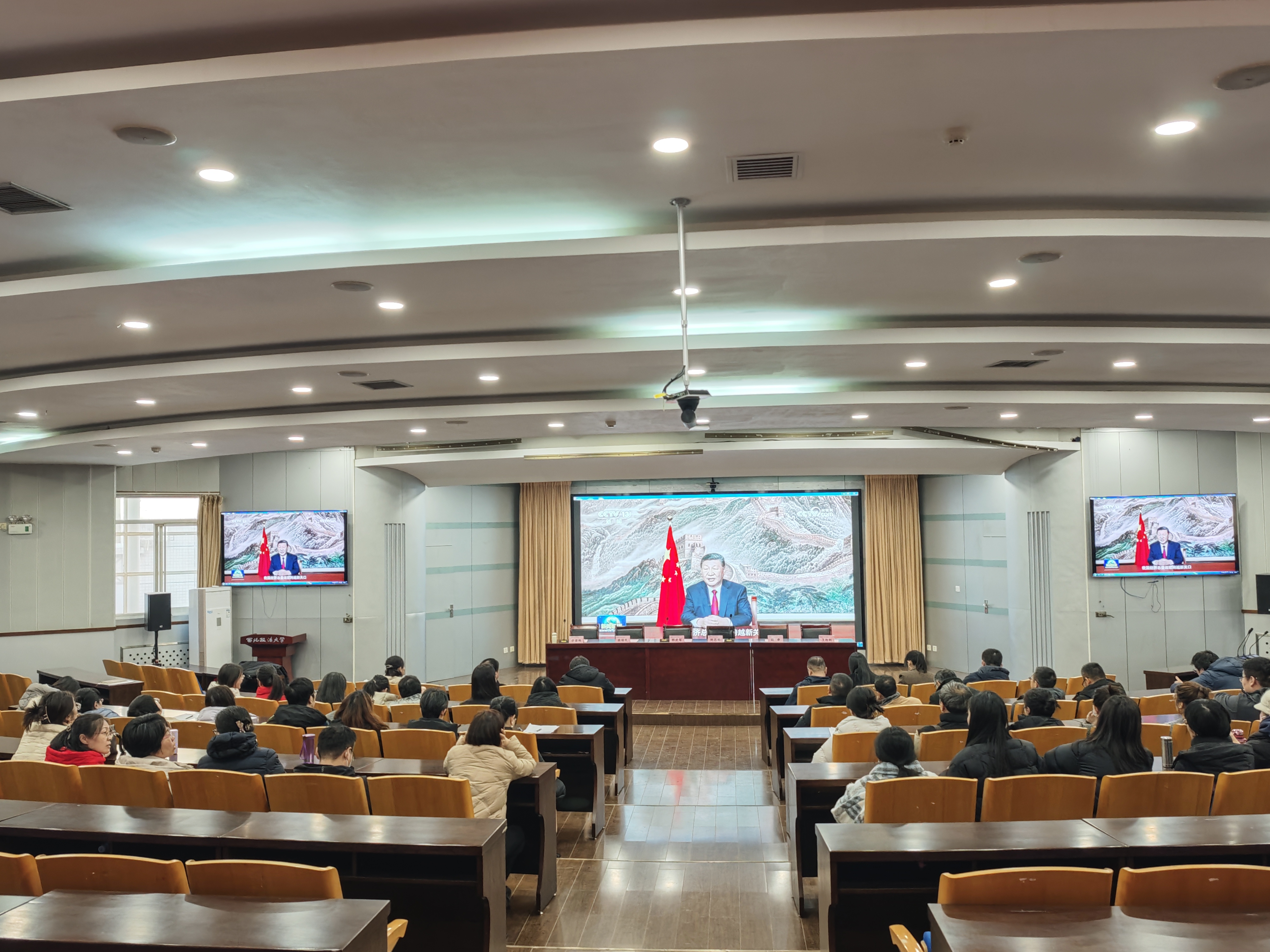 1月8日,经济学院在校务楼二楼报告厅召开教职工政治理论学习会议。学院领导班子成员和全体教职工参加学习,学院党委书记李建梅主持会议。会议集中学习习近平总书记在中共中央政治局民主生活会上的重要讲话精神,学习习近平主席发表的二〇二六年新年贺词,学习12月25日中共中央政治局会议精神以及中央经济工作会议精神。