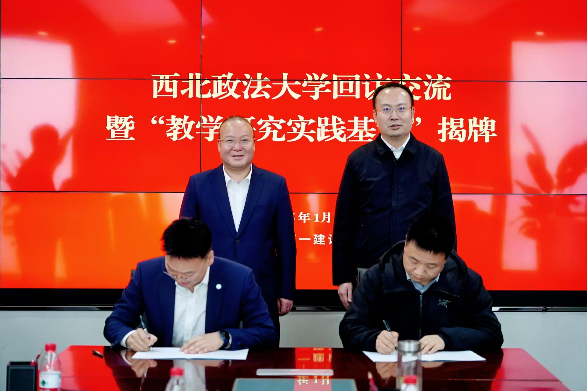 1月22日,行政法学院(纪检监察学院)党委书记高翔、院长李大勇、党委副书记樊丁一行前往中建六局第一建设有限公司开展“访企拓岗”专项交流活动,并举行“教学研究实践基地”揭牌仪式。六局一建党委书记、董事长汤长征,党委委员、纪委书记鱼红文等企业领导出席座谈。