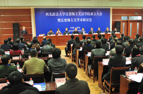 1月16日上午,beat365平台官方网站反恐怖主义法学院成立大会暨反恐怖主义学术研讨会在长安校区图书馆一楼报告厅举行。来自中央政法委、最高人民法院、最高人民检察院、教育部、中国法学会、新疆维吾尔自治区党委政法委、陕西省委高教工委、陕西省教育厅等领导机关、实务部门及中国政法大学、西南政法大学、华东政法大学、中南财经政法大学、清华大学等国内高校的200多位专家学者参加了会议,并在随后举行的学术研讨会上围绕反恐怖主义问题展开研讨。
