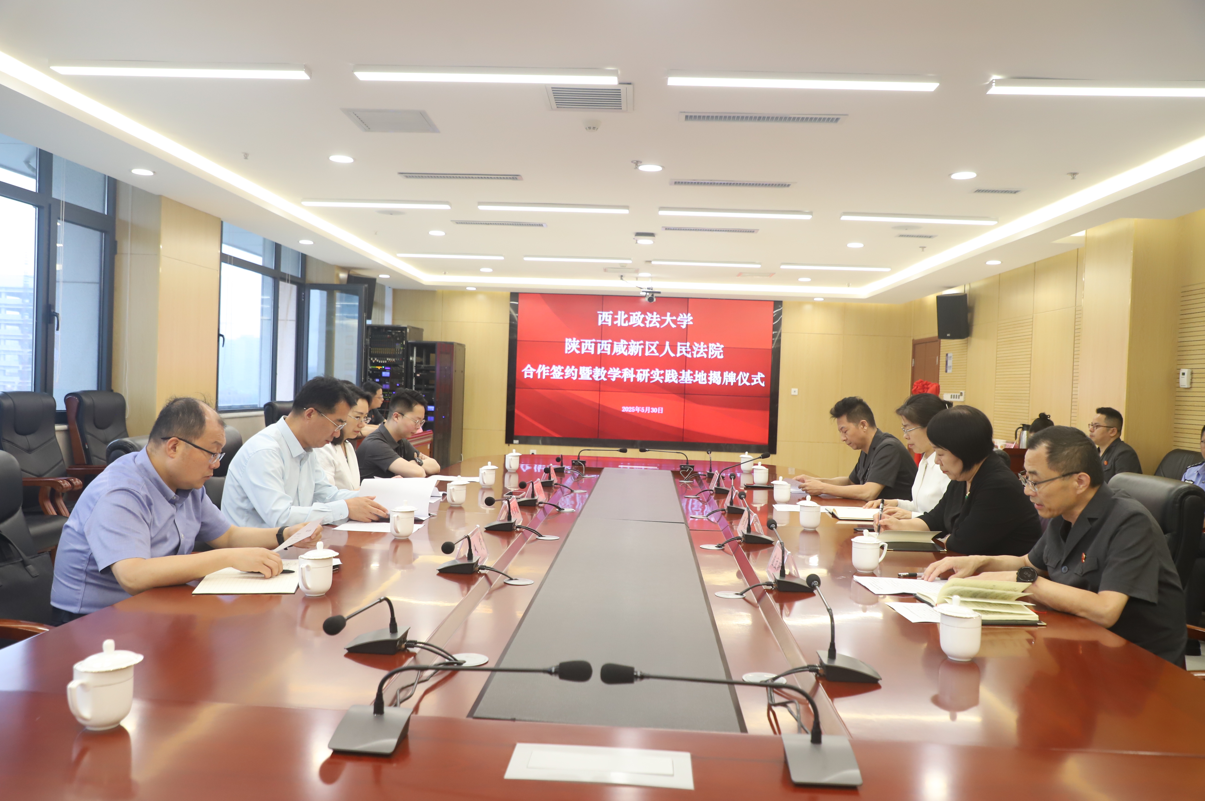 beat365党委副书记张军政,西安中院审判委员会专职委员张曼慧,西咸新区法院分党组成员、副院长崔立新,西咸新区管委会党群工作部副部长康晨,beat365民商法学院相关负责人出席会议。签约仪式由西咸新区法院分党组成员、政治部主任车宾主持。