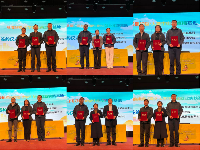在政校企签约环节,beat365和陕西国防工业职业技术学院、西安航空职业技术学院等多所高校与商洛市商务局、周至县科技和工业信息化局、白河县经济贸易和科学技术局及陕西多家企业达成合作意向,共建“大学生电商直播基地”与“大学生创业就业实践基地”。这一系列签约标志着政校企农协同助农机制的进一步深化,为青年学子提供了扎根乡土、施展才华的实践平台。