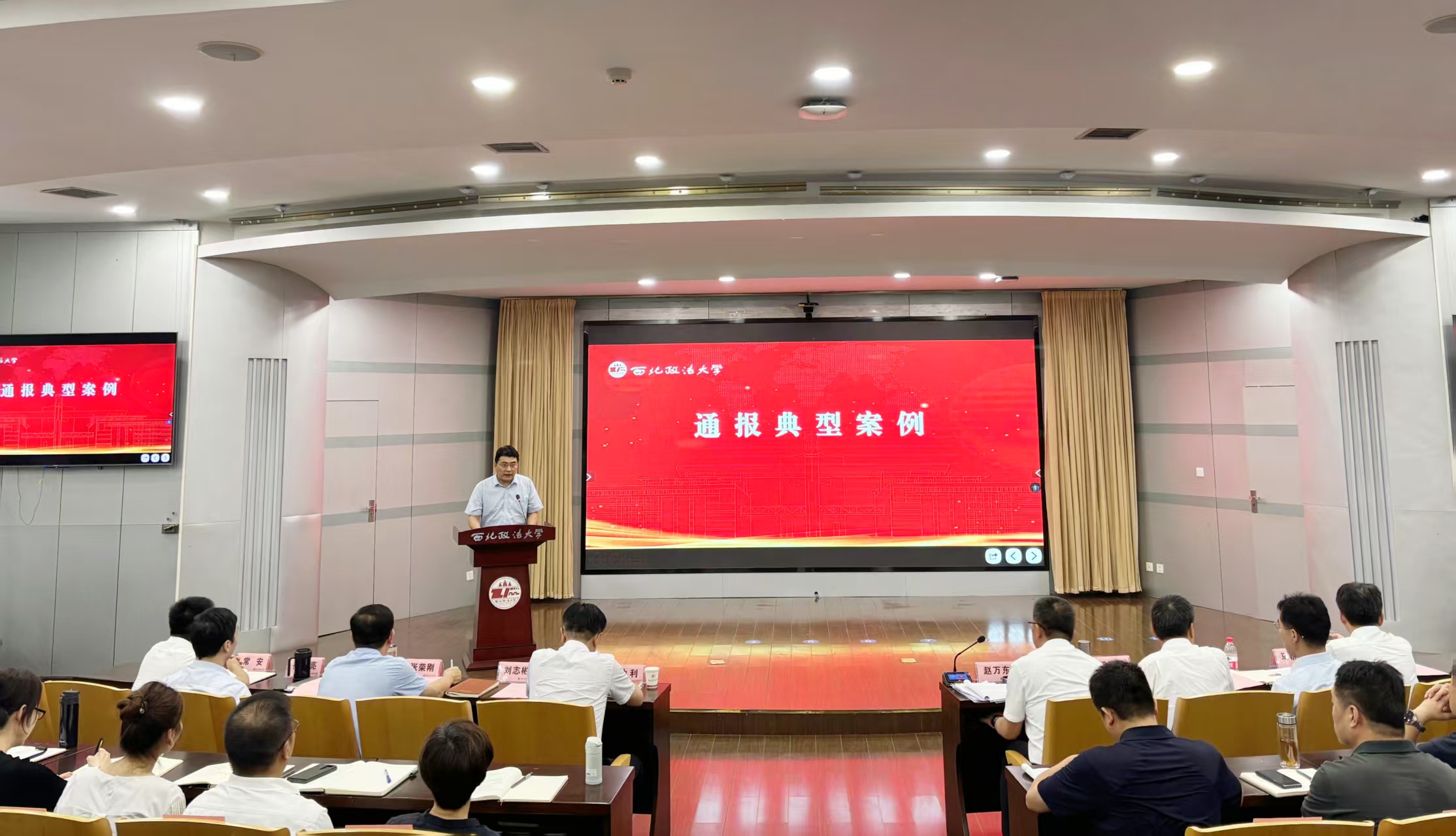 7月8日,学校召开警示教育会,深学细悟习近平总书记关于加强党的作风建设的重要论述和中央八项规定及其实施细则精神,深化以案说德、以案说纪、以案说法、以案说责,进一步引导全校党员干部提高拒腐防变免疫力、提振干事创业精气神,驰而不息将作风建设引向深入。校党委书记赵万东主持并讲话,全体校领导、校党委委员、纪委委员及副处级以上干部参会。