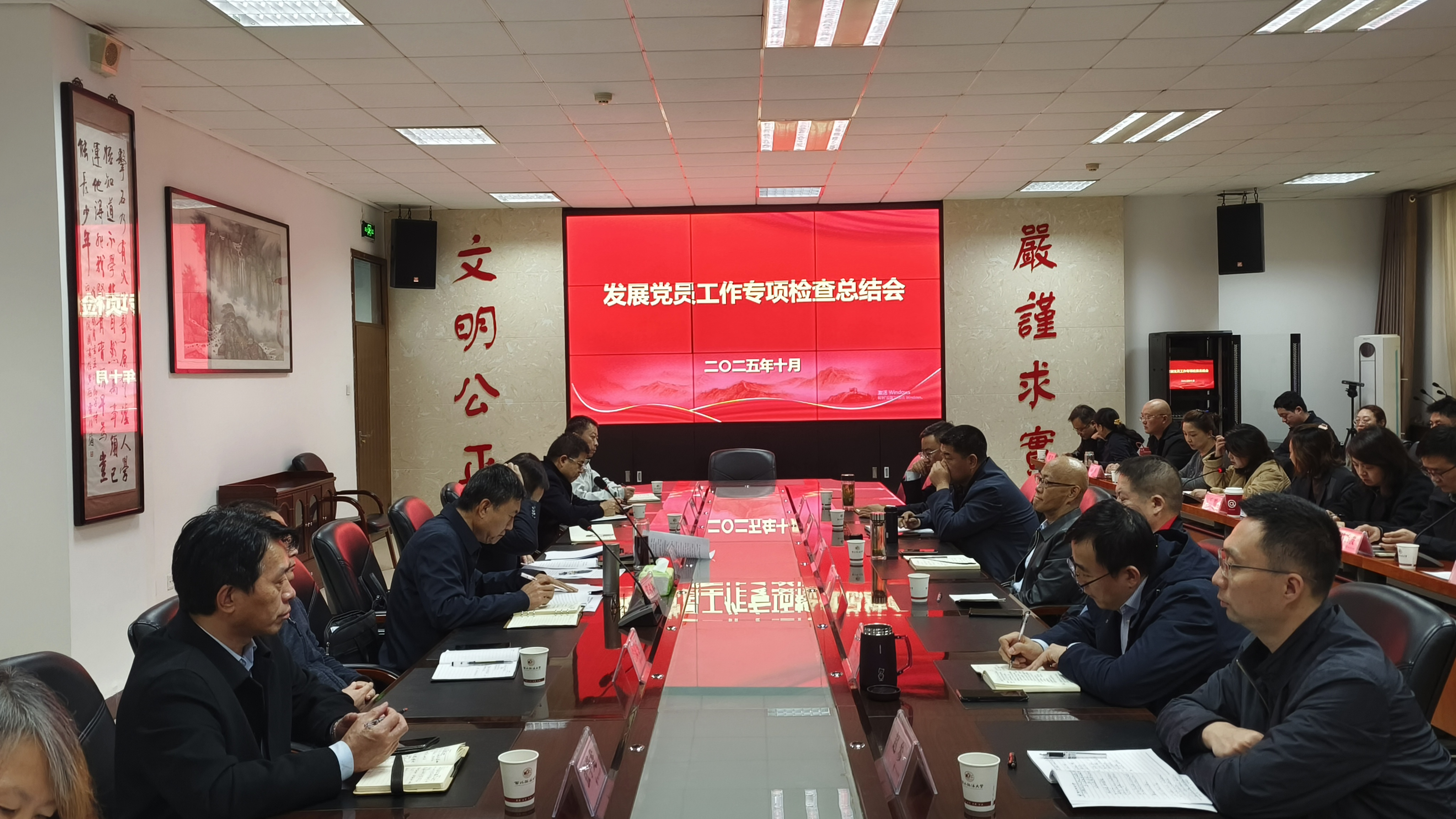 郭武军在总结讲话中表示,本次发展党员工作专项检查坚持目标导向,突出检查重点,找准查实问题,达到预期目的。他强调,要提高政治站位,深刻把握发展党员工作的重要性,严把发展党员“入口关”,始终把政治标准放在首位,坚持慎重发展、均衡发展,做到成熟一个、发展一个。要深刻剖析突出问题,规范发展党员程序,认真执行发展党员流程,严谨规范做好发展党员工作。要深挖问题根源,构建发展党员检查长效保障机制,切实履行主体责任,健全发展党员的审核把关机制,明确整改措施,逐项抓好整改,推动学校发展党员工作提质增效。