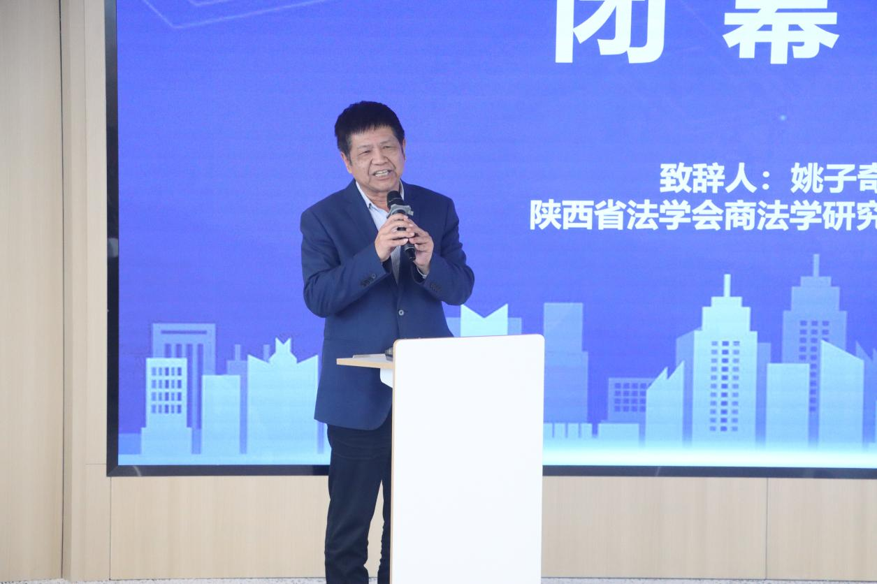 陕西省法学会商法学研究会姚子奇副会长致闭幕词,他表示此次会议是一场学术交流与分享,各发言人都针对商事法治建设中的重点、热点和难点问题进行了论述,同时也对未来提出展望,希望可以在此基础上进一步提升。