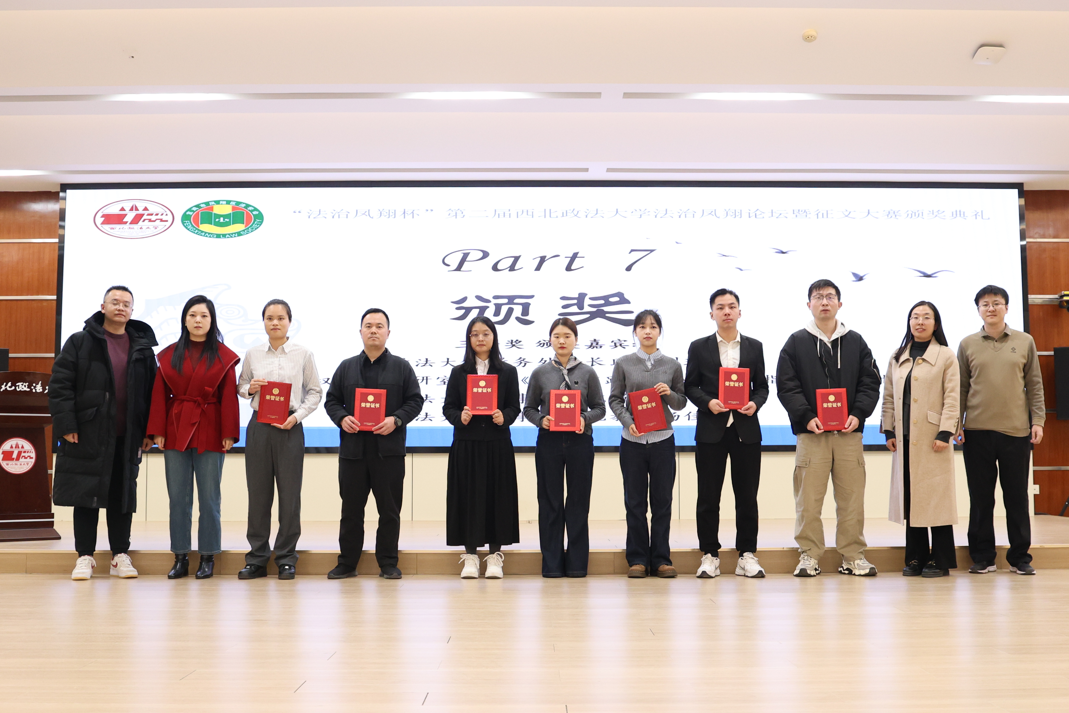 教务处副处长、《法学实践论丛》编辑部指导教师王鹏飞宣读获奖名单。与会嘉宾为获奖选手颁奖并合影留念。