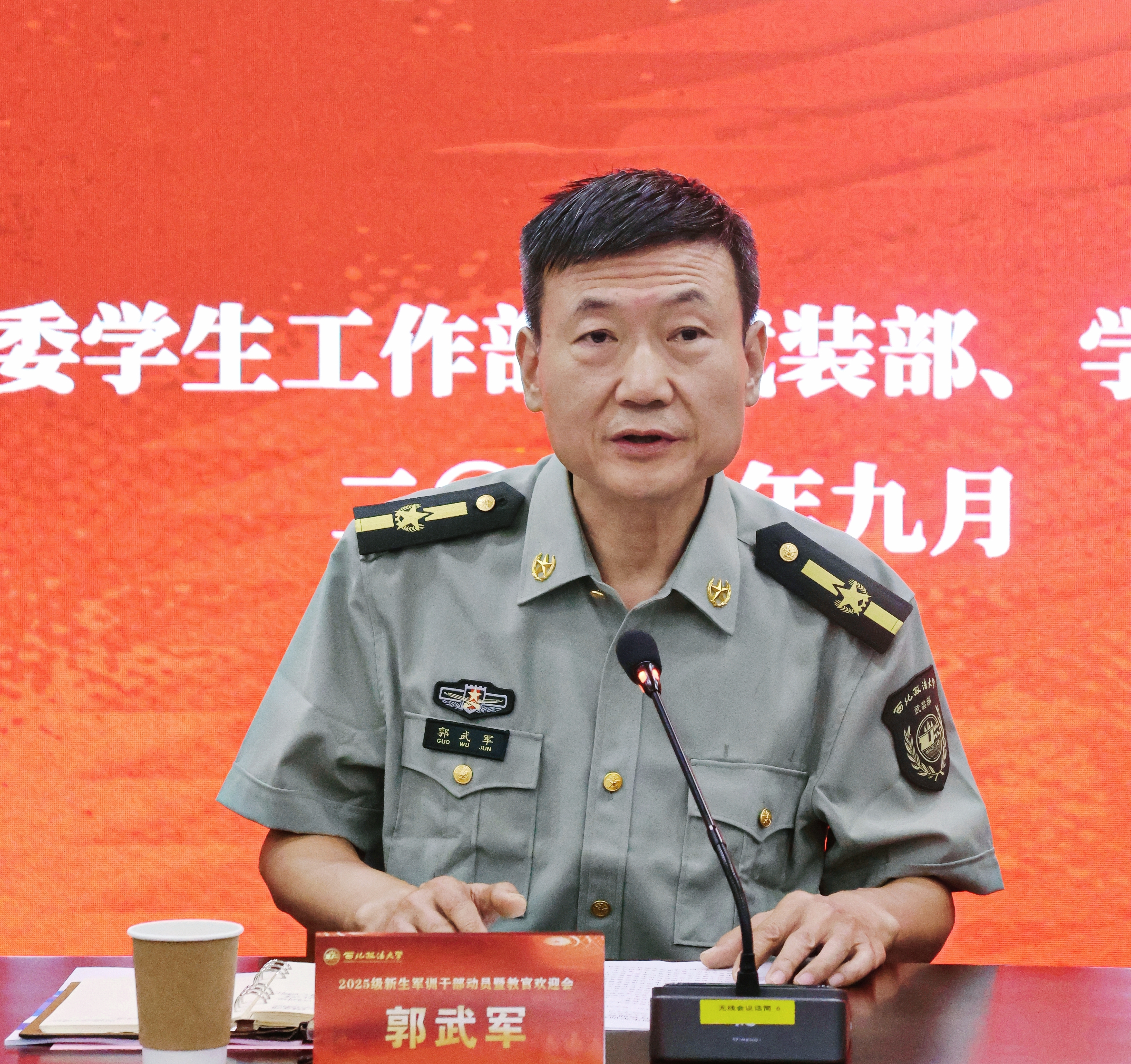 郭武军为军训旅各团授旗并作军训动员讲话。他表示,今年是中国人民抗日战争暨世界反法西斯战争胜利80周年,开展新生军训工作是继承和弘扬“伟大抗战精神”的重要形式。他强调,全体参训干部要提高政治站位,强化使命担当,深刻认识军训育人时代意义;坚持铸魂育人,融通思政教育,全面提升军训综合育人实效;强化协同联动,压实部门责任,全力保障军训规范有序开展;科学组训施训,突出严爱相济,筑牢军训安全与质量双基础,以九三阅兵展现的强国强军风貌为引领,恪尽职守、全力以赴,共同完成好本次军训任务。