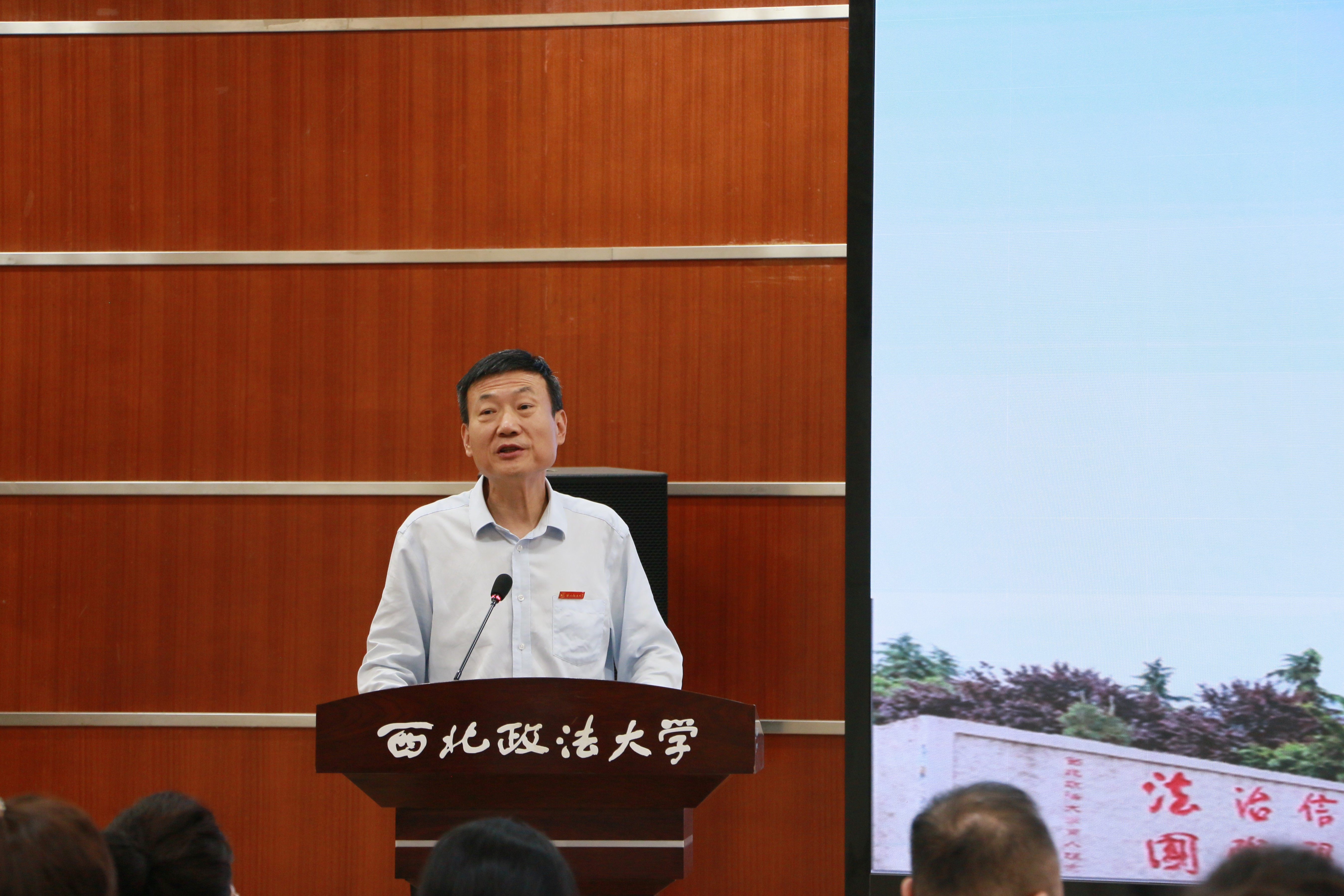 郭武军在讲话中表示,对2025级新疆少数民族预科学生表示热烈欢迎,他详细介绍了红色西法大的峥嵘岁月和培养少数民族学生的光荣历程。他强调,预科是从高中过度到本科的重要阶段,把握好预科阶段的学习将为本科阶段奠定坚实的基础。他希望大家快速适应自主学习和集体生活、主动参与校园活动、扎实掌握基础知识;将个人发展融入民族复兴伟业,深刻认识铸牢中华民族共同体意识的重大意义;努力成为民族团结的积极践行者,以专业所长报效国家、建设家乡、服务人民。
