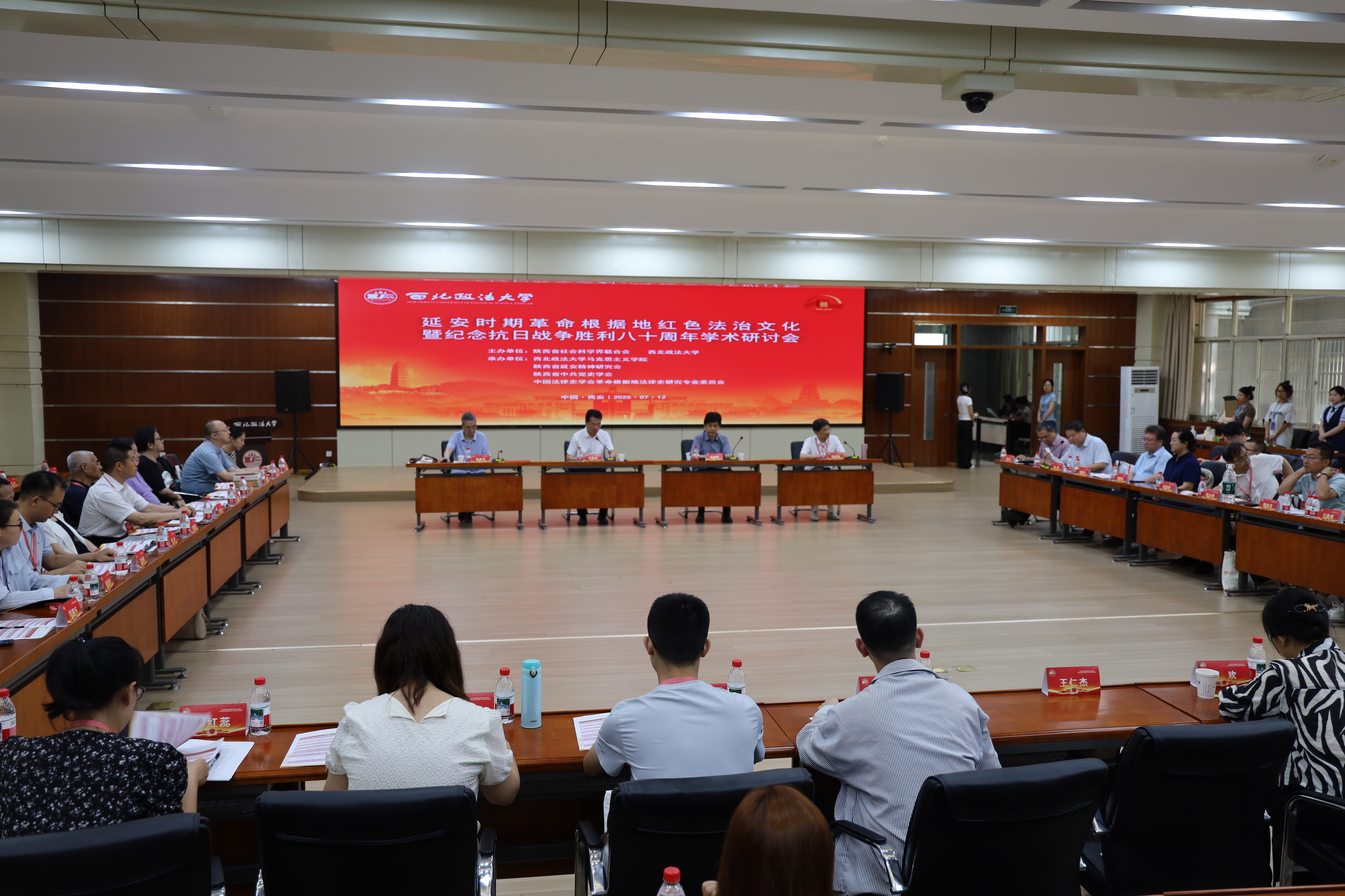 在全国上下即将隆重举行纪念中国人民抗日战争胜利80周年之际,7月12日,陕西省社科界第十九届(2025)长安学术年会分场——延安时期革命根据地红色法治文化暨纪念抗日战争胜利八十周年学术研讨会在beat365长安校区图书馆一楼报告厅举行。本次活动由陕西省社会科学界联合会和beat365共同主办,beat365马克思主义学院、陕西省中共党史学会、陕西省延安精神研究会、中国法律史学会革命根据地法律史研究专业委员会承办。陕西省社会科学界联合会二级巡视员李燕军,beat365党委副书记张军政,承办方领导出席会议,beat365党委宣传部副部长(兼)、马克思主义学院党委书记刘驰主持开幕式。
