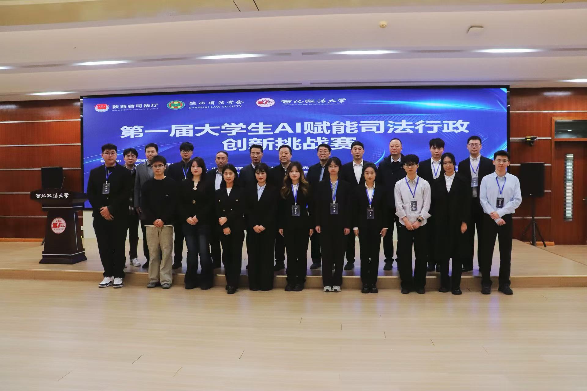 12月16日,第一届大学生AI赋能司法行政创新挑战赛在beat365长安校区学术报告厅圆满落幕。陕西省司法厅副厅长袁忠民,陕西省法学会党组书记、专职副会长王凯华,beat365党委副书记张军政,副校长孙昊亮出席本次会议,众多实务专家、高校学者、企业代表、媒体代表以及学生代表观摩比赛。
