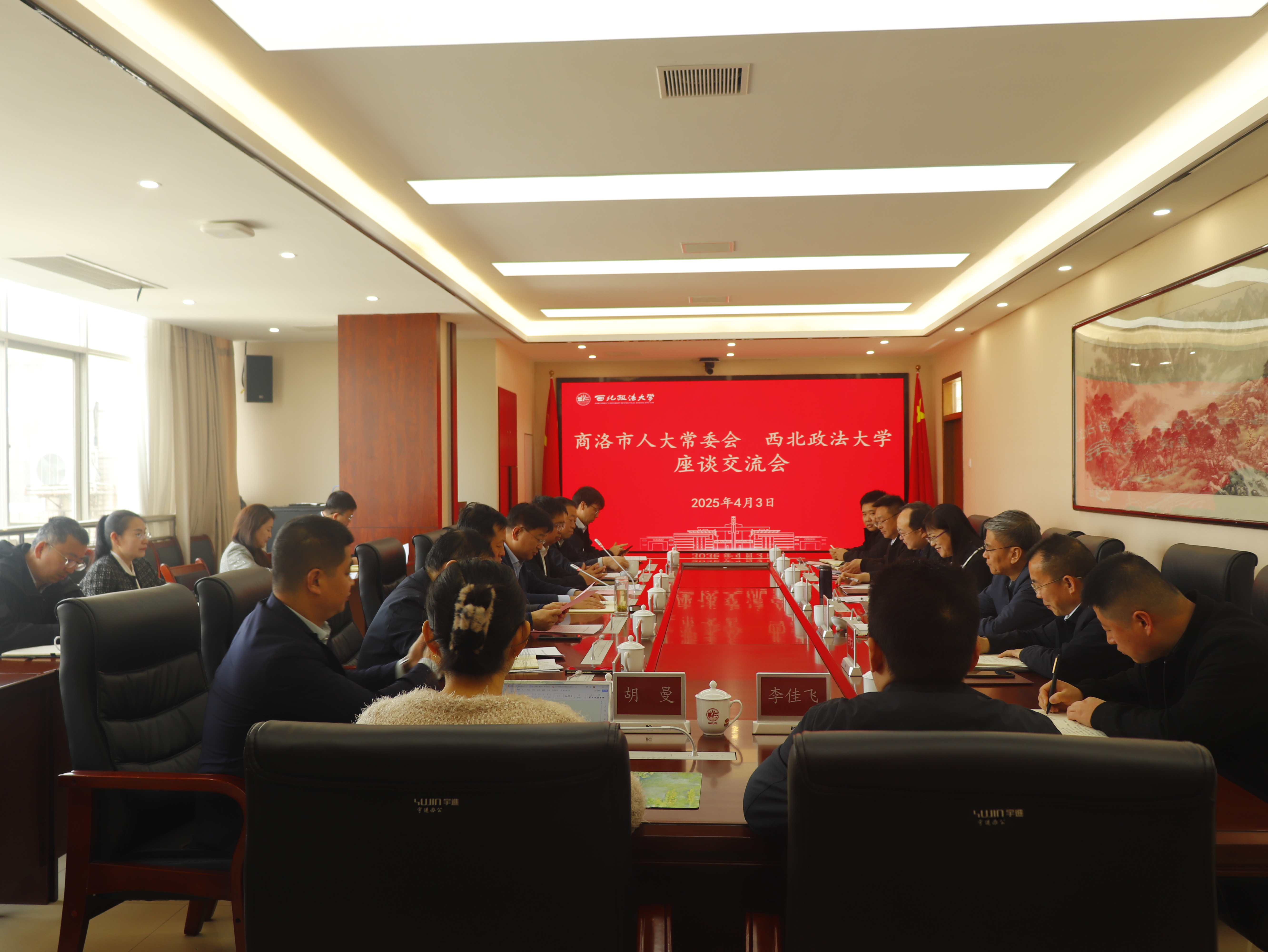 在交流环节,与会人员就如何加强校地合作进行了深入探讨,并达成初步共识。 法治办、研究生院、人事处、科研处、法治学院 法律硕士教育学院、行政法学院(纪检监察学院)、经济法学院(知识产权学院)、国家安全学院(反恐怖主义法学院)、备案审查研究中心、立法研究院等单位负责同志参加活动。