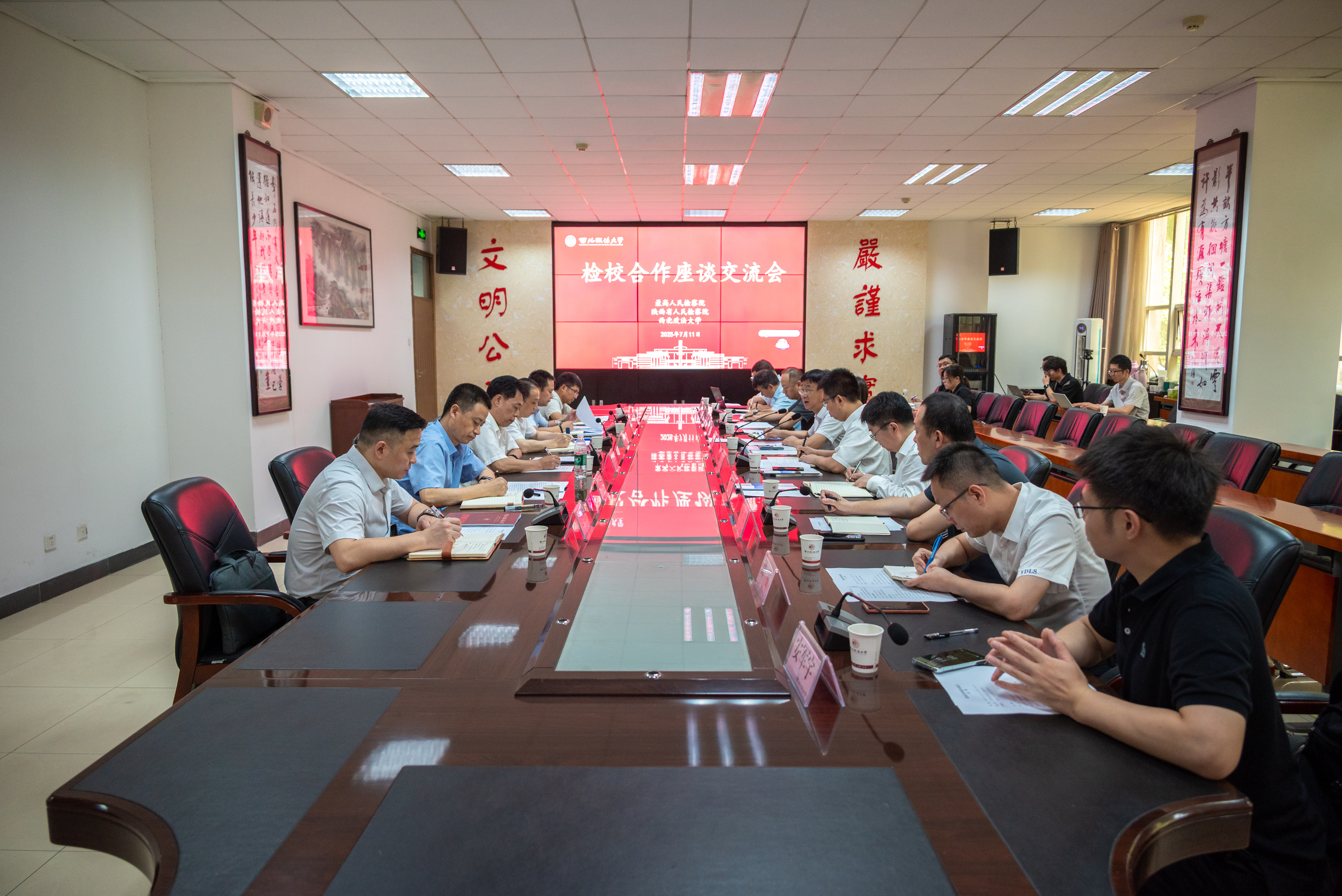 7月11日,最高人民检察院政治部副主任周玉庆一行来beat365调研检察学学科建设工作,围绕深化检校合作座谈交流。陕西省人民检察院政治部主任徐彤陪同调研。校长范九利参加调研座谈会,副校长常安主持会议。