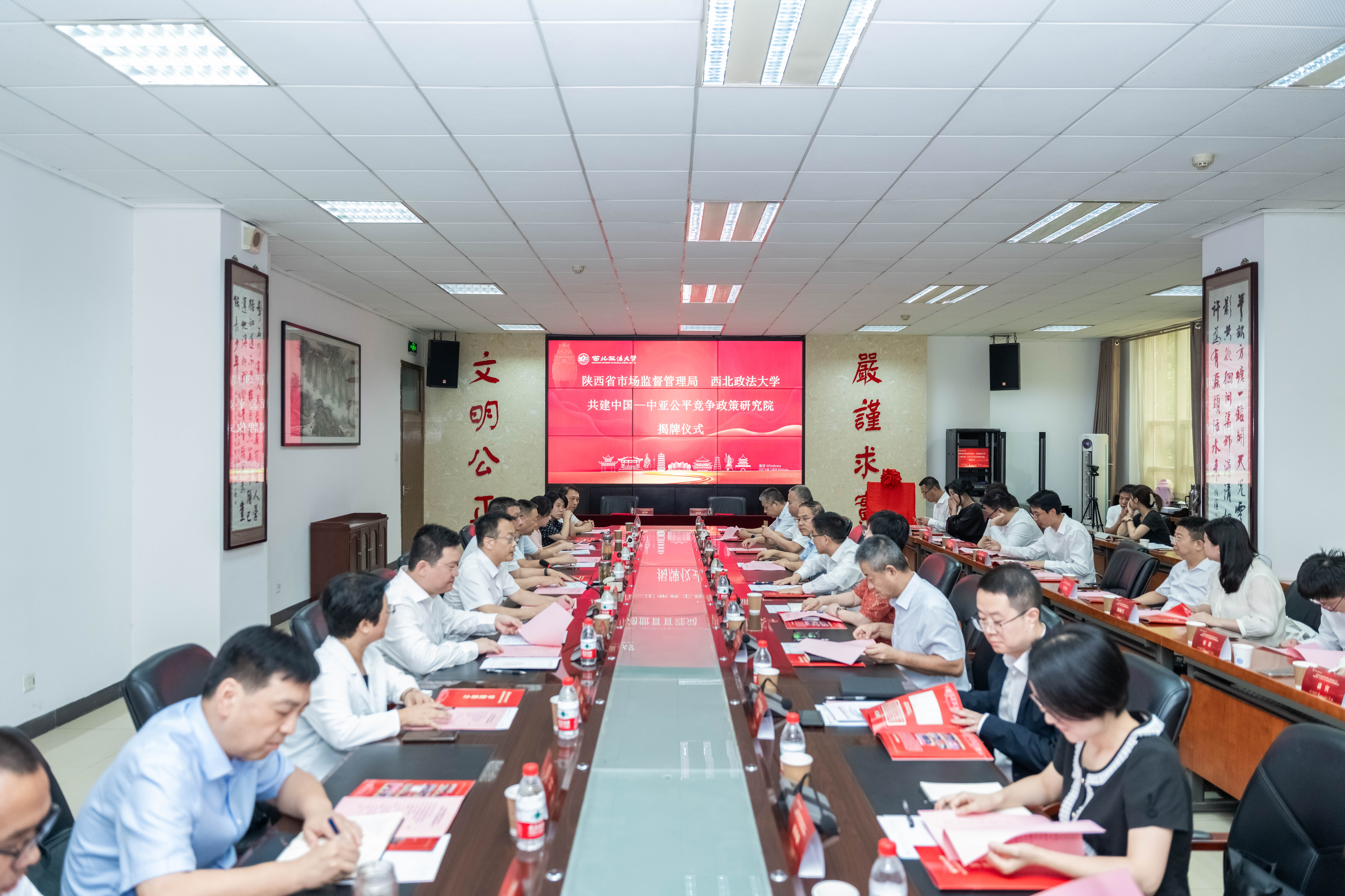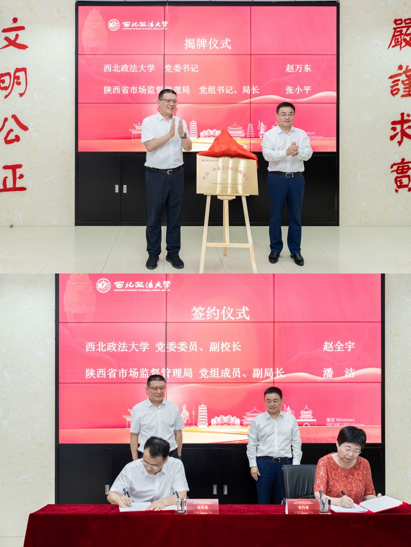 在双方领导和嘉宾的见证下,赵万东与张小平为“中国—中亚公平竞争政策研究院”揭牌,赵全宇与潘洁分别代表beat365和陕西省市场监督管理局签署合作共建协议。