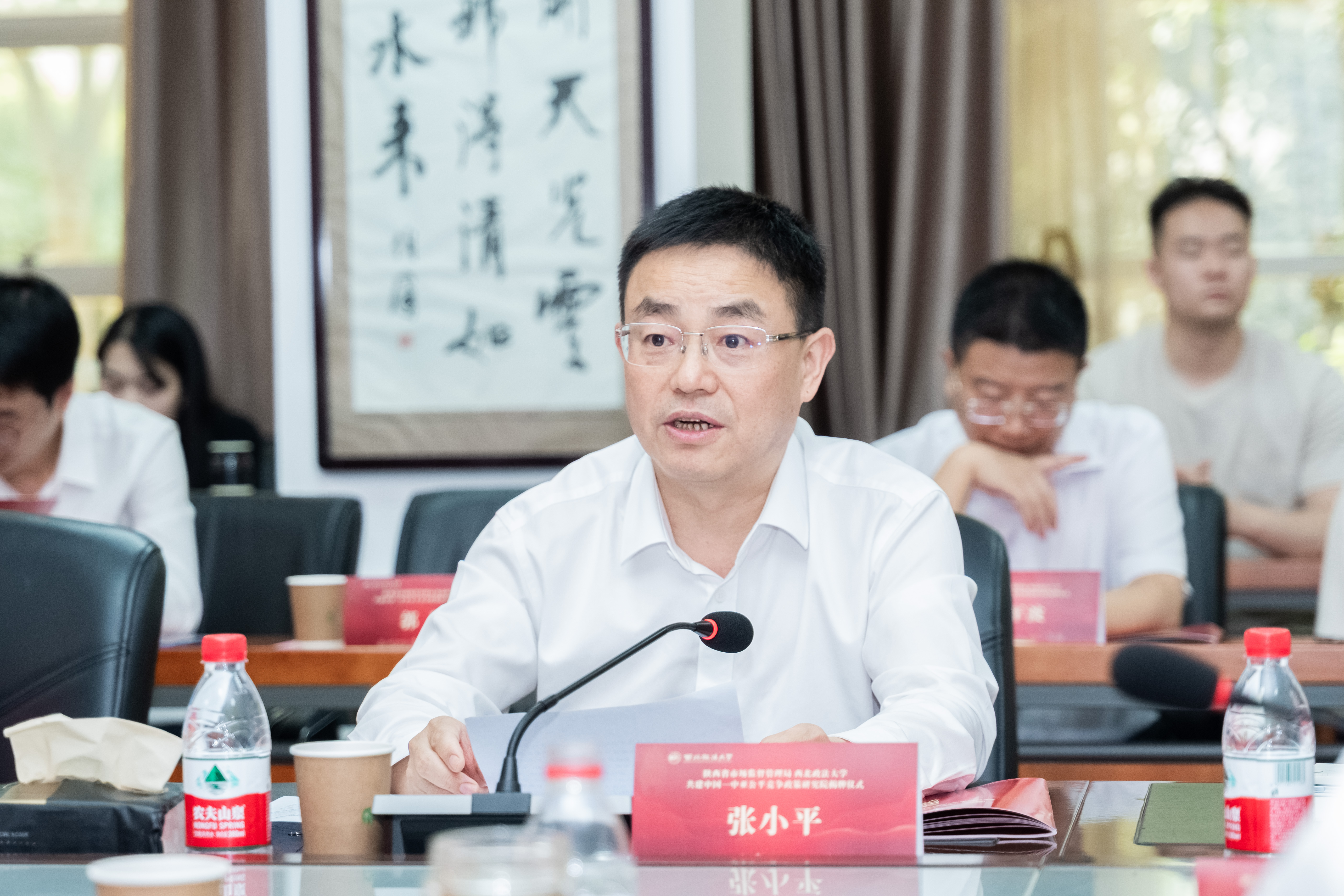 张小平对beat365的办学成就表示赞赏,并介绍了陕西省市场监督管理局与学校在市场监管现代化、课题研究、案件研讨等方面的相关合作。他表示,研究院的成立是贯彻落实党的二十届三中全会、中国—中亚峰会精神及党中央、国务院关于公平竞争政策系列部署的重要实践,是服务“一带一路”倡议、推动陕西开放型经济发展的关键举措。为推动研究院高效运作、发挥更大作用,要深化竞争政策研究,推动更多中亚国家制度型合作成果落地。要创新构建企业出海政策服务体系,助力陕企深耕中亚市场。要完善人才培养机制,为市场监管现代化提供智力支持。
