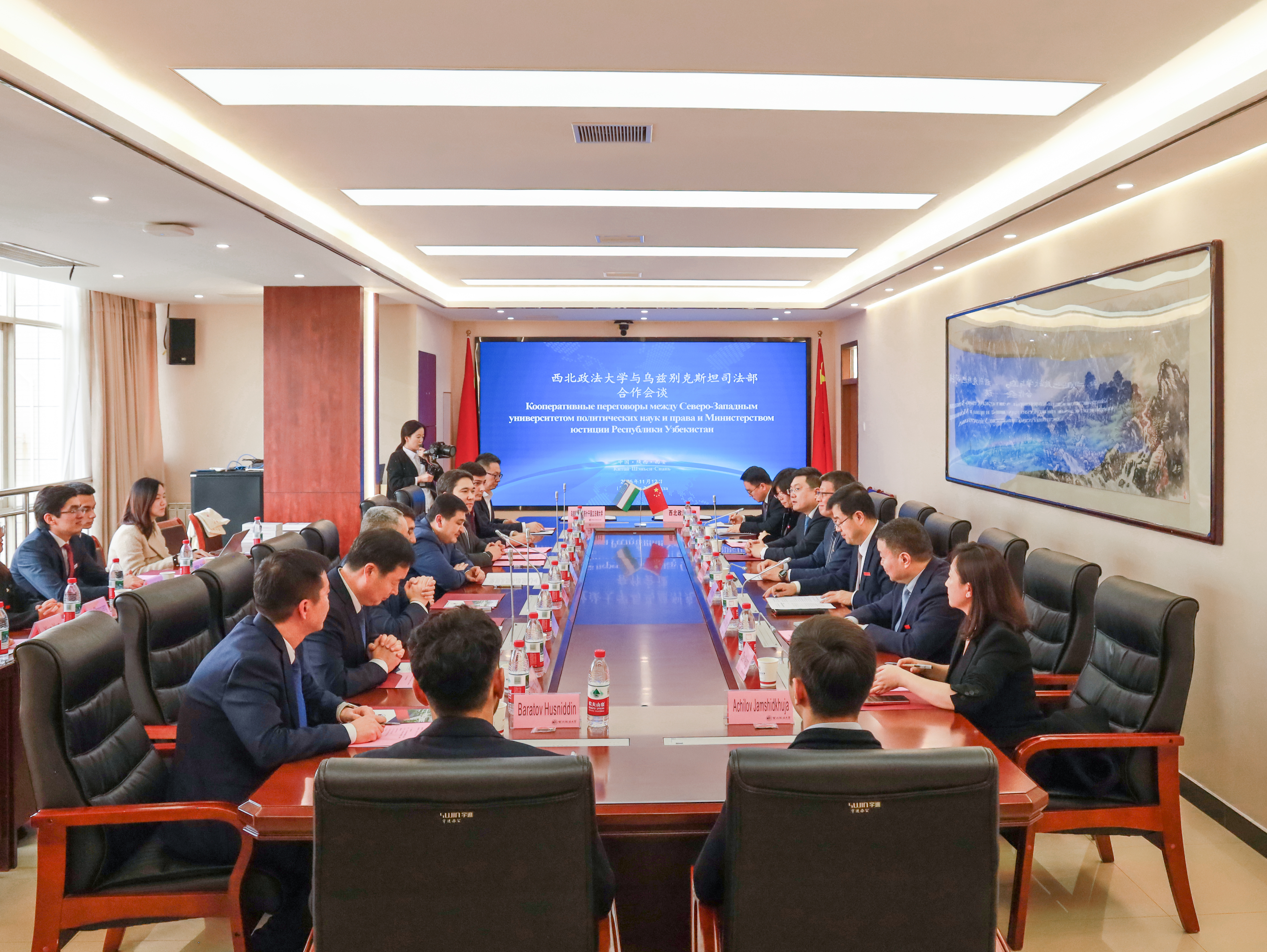 11月12日下午,乌兹别克斯坦司法部副部长拉比耶夫·谢尔扎德、塔什干国立法律大学校长鲁斯塔姆别科夫·伊斯兰别克、副校长伊米诺夫·阿齐祖拉一行来访beat365,双方举行合作会谈并签署合作协议。校党委书记赵万东出席。陕西省委外办,西安仲裁委员会,陕建三建集团,以及学校相关职能部门、学院负责人,留学生代表等参会。副校长张荣刚主持合作会谈。