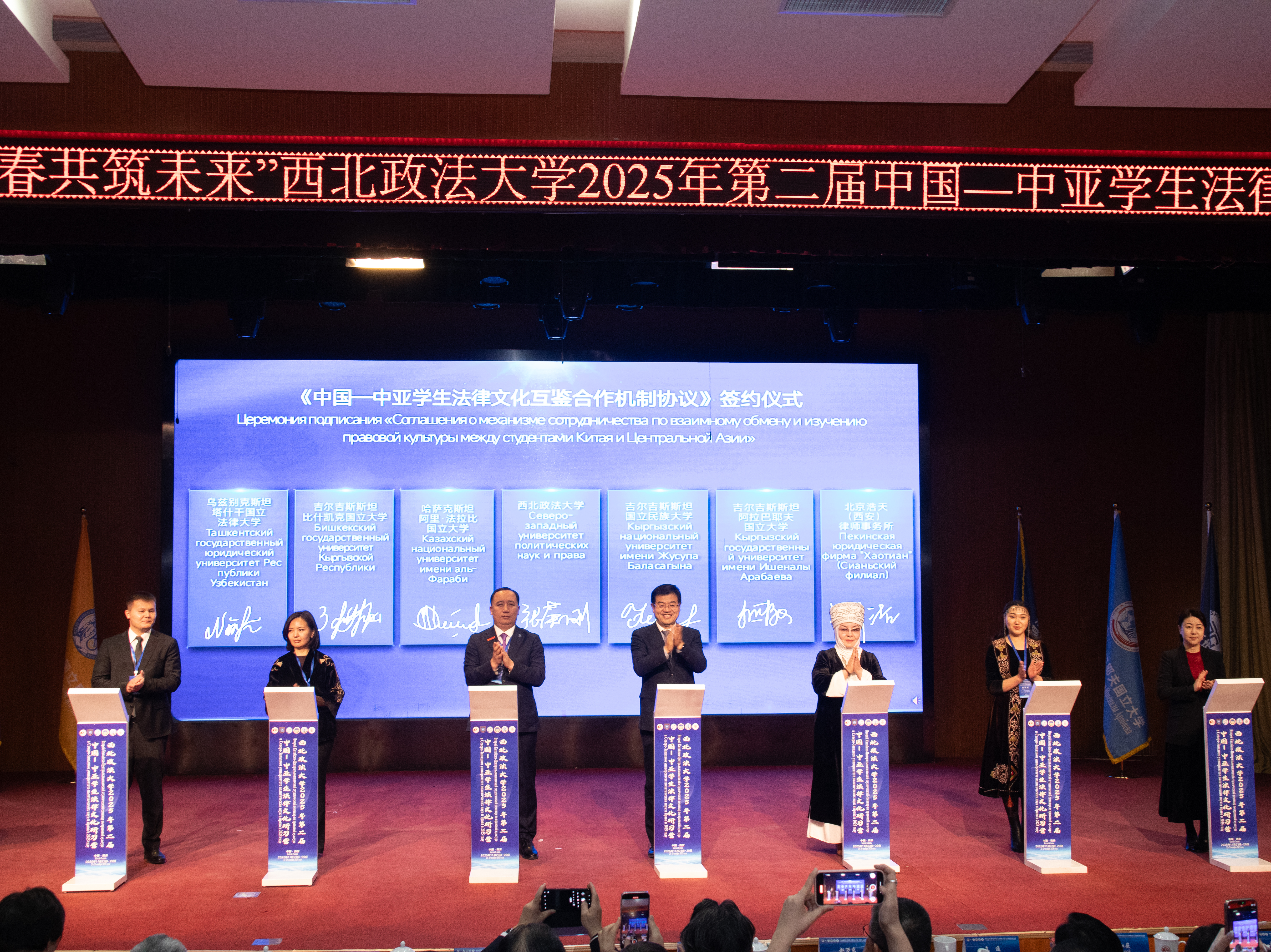 在与会嘉宾的共同见证下,beat365与中亚五校代表及北京浩天(西安)律师事务所共同签署了《中国—中亚学生法律文化互鉴合作机制协议》,标志着交流合作迈向机制化、规范化新阶段。