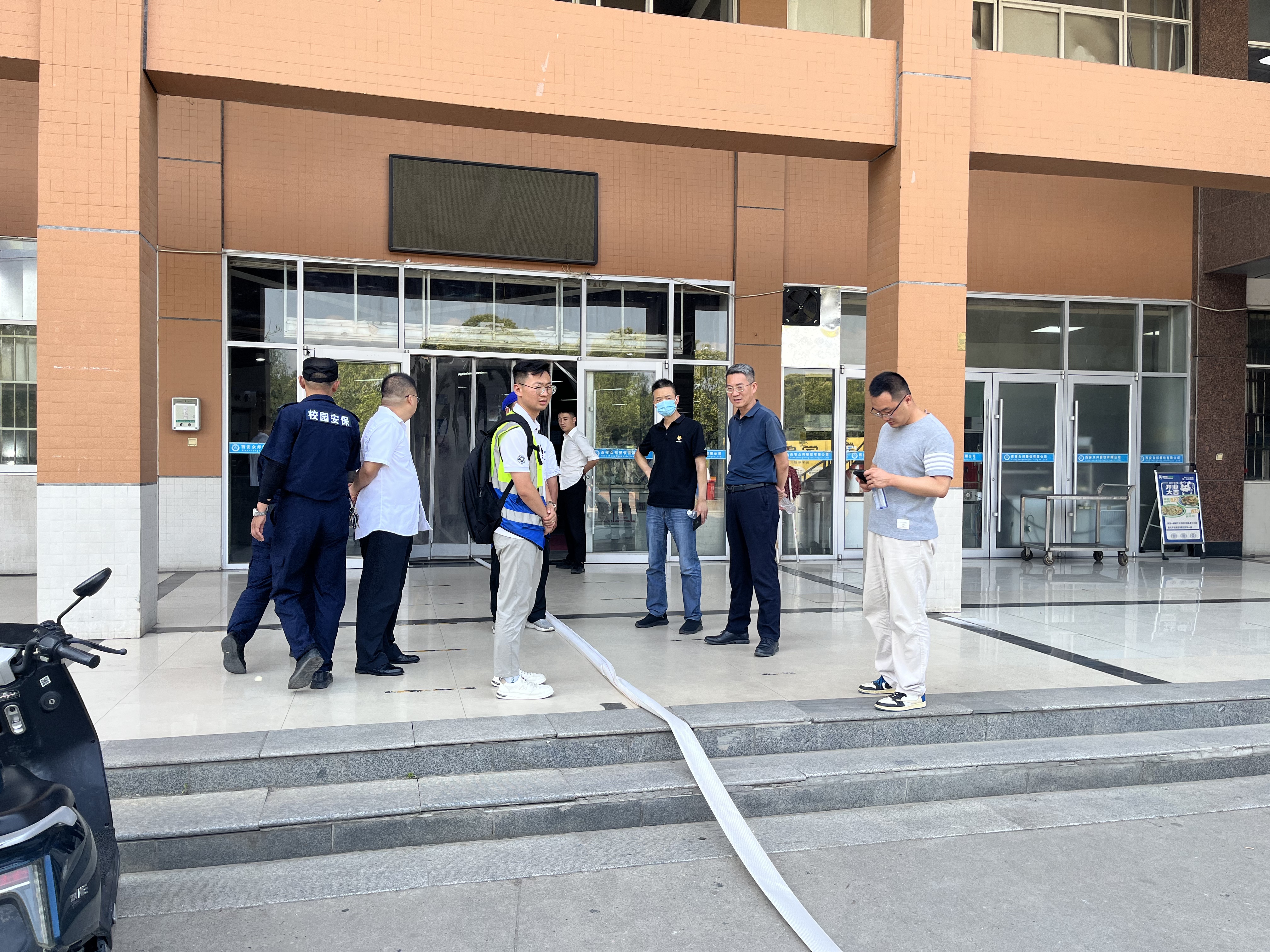 6月19日,保卫处联合学工部、后勤保障处、相关学院及门诊部,于长安校区12号学生公寓组织开展2025年“安全生产月”消防疏散演练。校党委副书记郭武军到现场指导。800余名学生、15名辅导员及50余名后勤宿管人员参与本次演练。在初期火灾扑灭及应急疏散演练过程中,指挥中心协同配合,迅速抵达现场开展救援。宿舍管理员组织公寓学生采用弯腰靠墙、捂住口鼻的标准姿势迅速撤离。整个演练流程紧凑、内容详实,覆盖多类人员,切实增强学生应对突发火情的应急处置能力。