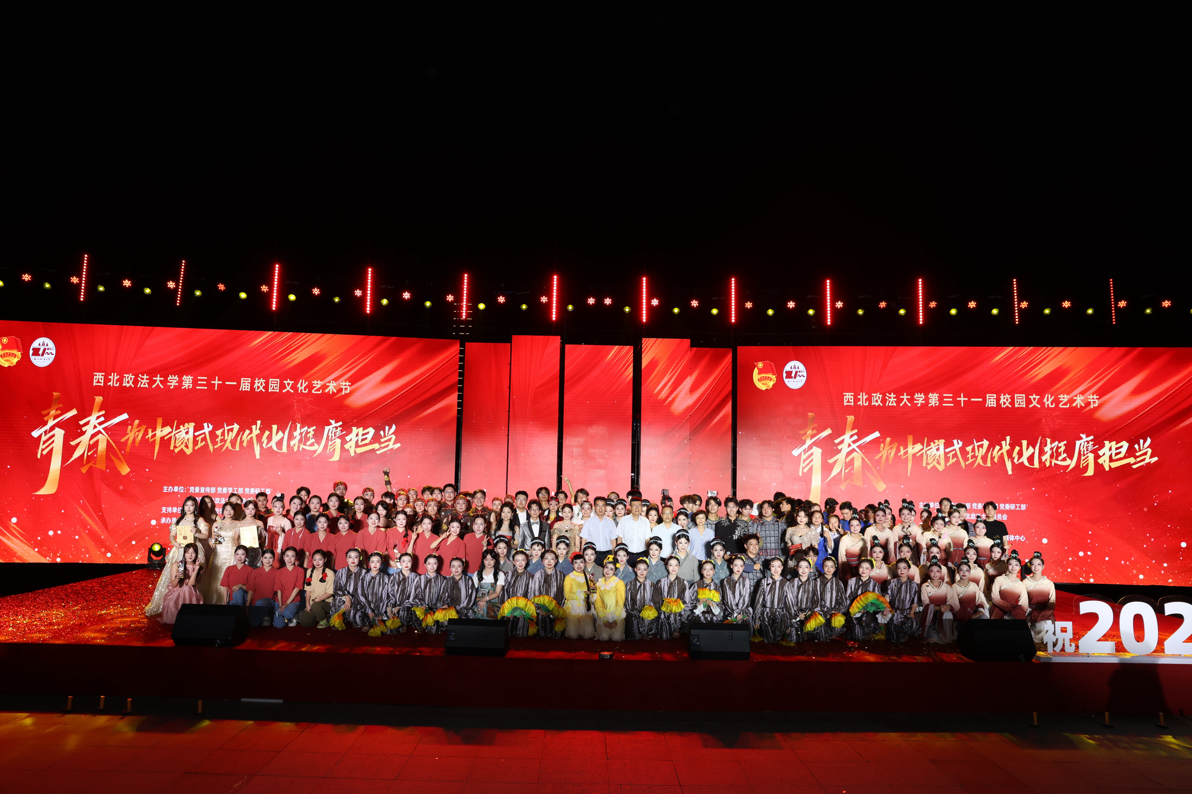 6月19日晚,以“青春为中国式现代化挺膺担当”为主题的beat365平台官方网站第三十一届校园文化艺术节歌舞汇演在长安校区天平楼前广场举行。校党委书记赵万东,校党委副书记郭武军,校党委副书记张军政,校党委委员、副校长赵全宇,校党委委员、研工部部长宋白及相关部门负责人与千余名学子一道,雅韵同赏、酣歌尽欢,毕业之季,师生骊歌相和、鹏程互期。