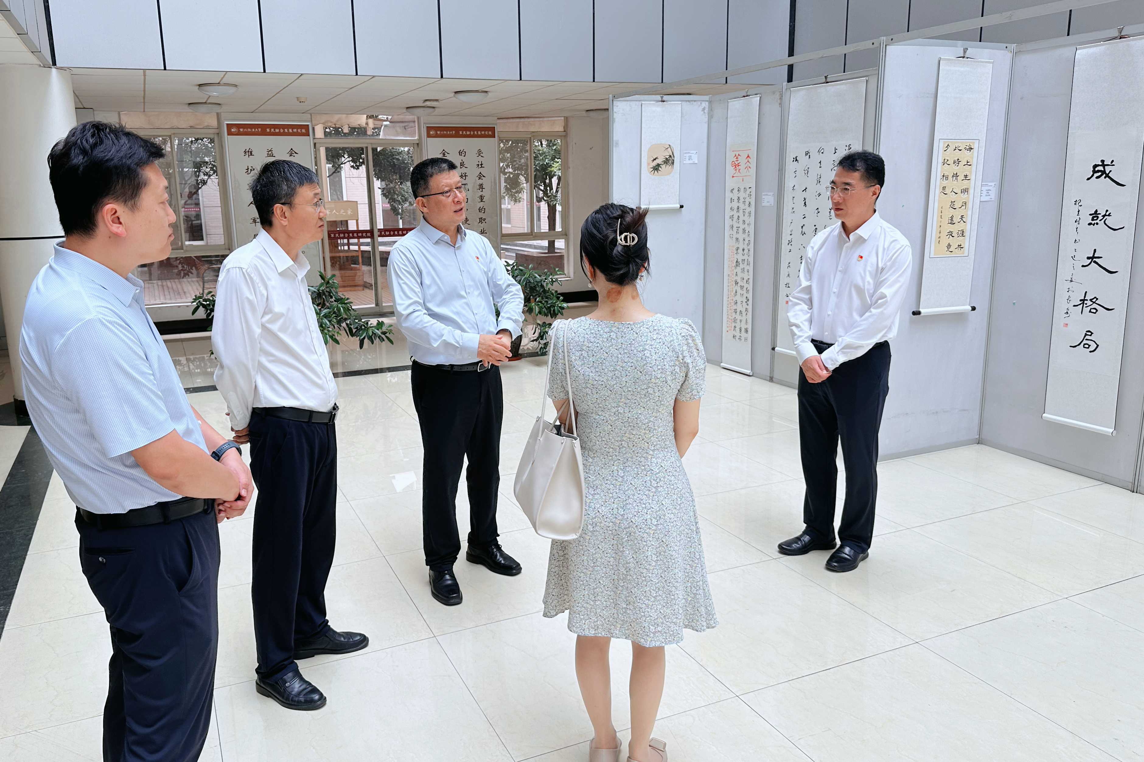 7月1日,“丹心绘党魂·翰墨颂华章”纪念中国人民抗日战争胜利80周年师生书画作品展在校务楼一楼大厅举办。校党委书记赵万东、校党委副书记郭武军、校党委副书记张军政参加活动。