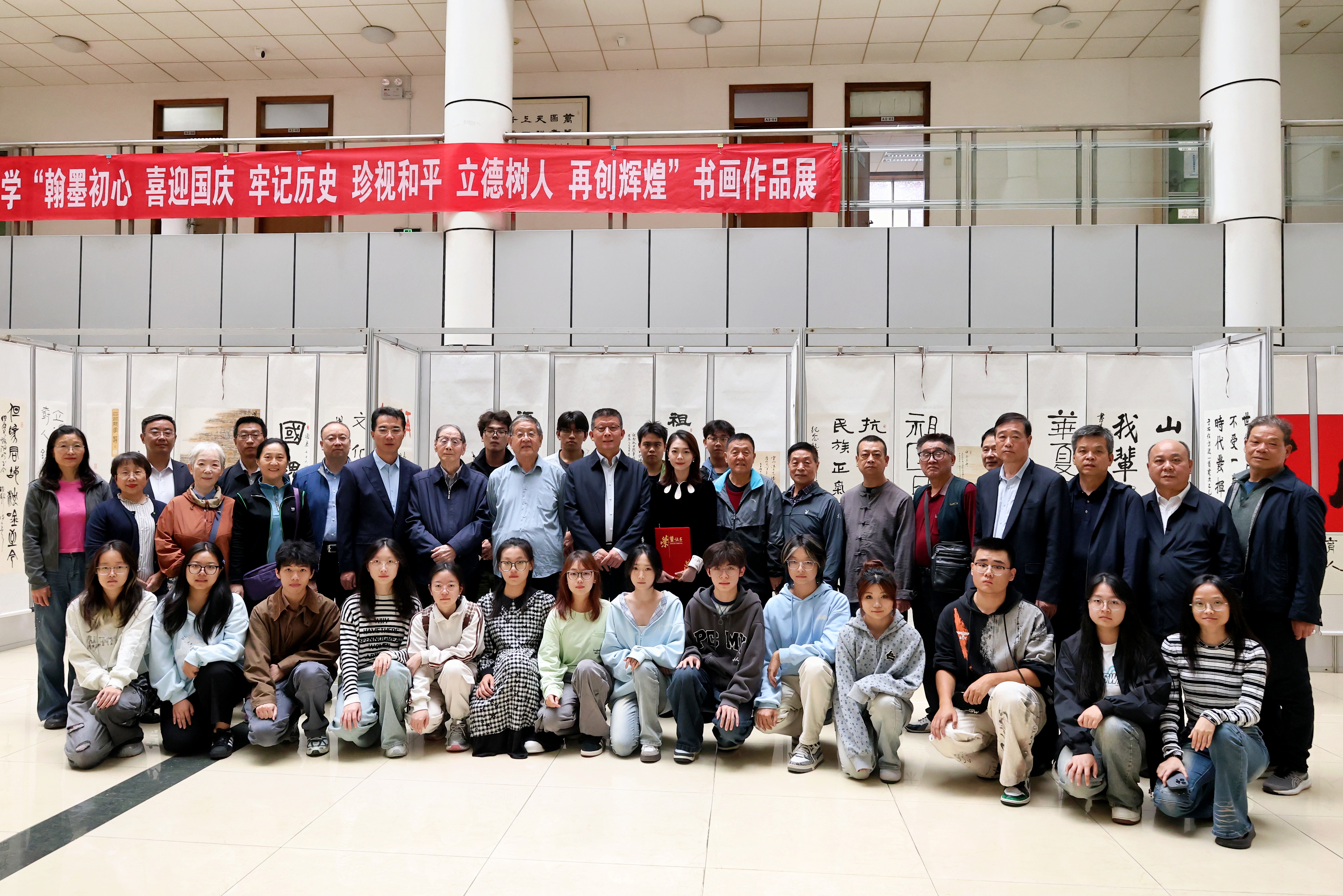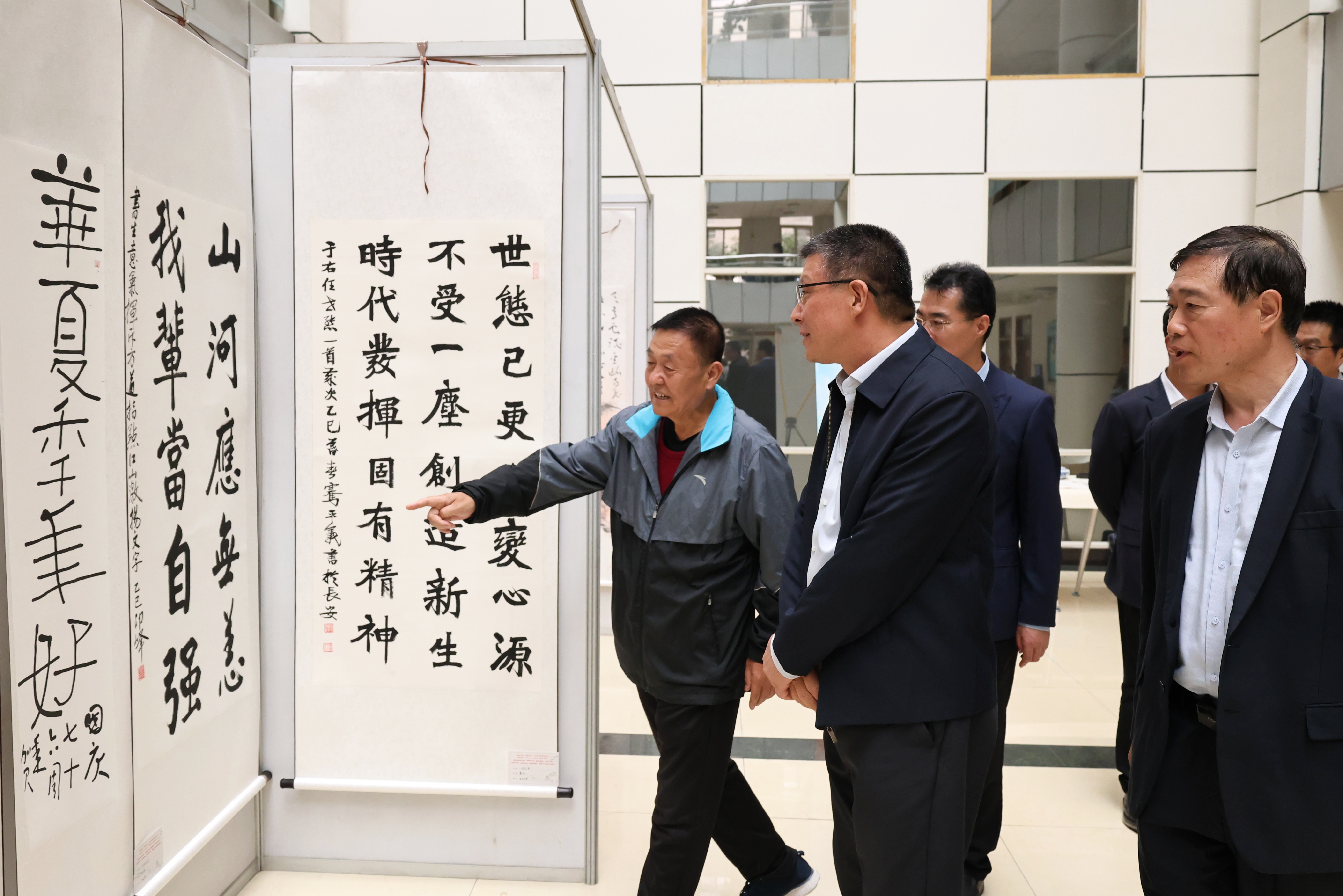 9月26日上午,“翰墨初心 喜迎国庆 牢记历史 珍视和平 立德树人 再创辉煌”——beat365庆祝中华人民共和国成立76周年书画作品展在长安校区开幕,校党委书记赵万东,校党委副书记张军政出席开幕式并观看展览。
