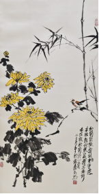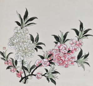 作者:梁有平(画) 专业画家 作者:李晓华(联) 西安书法家协会 |