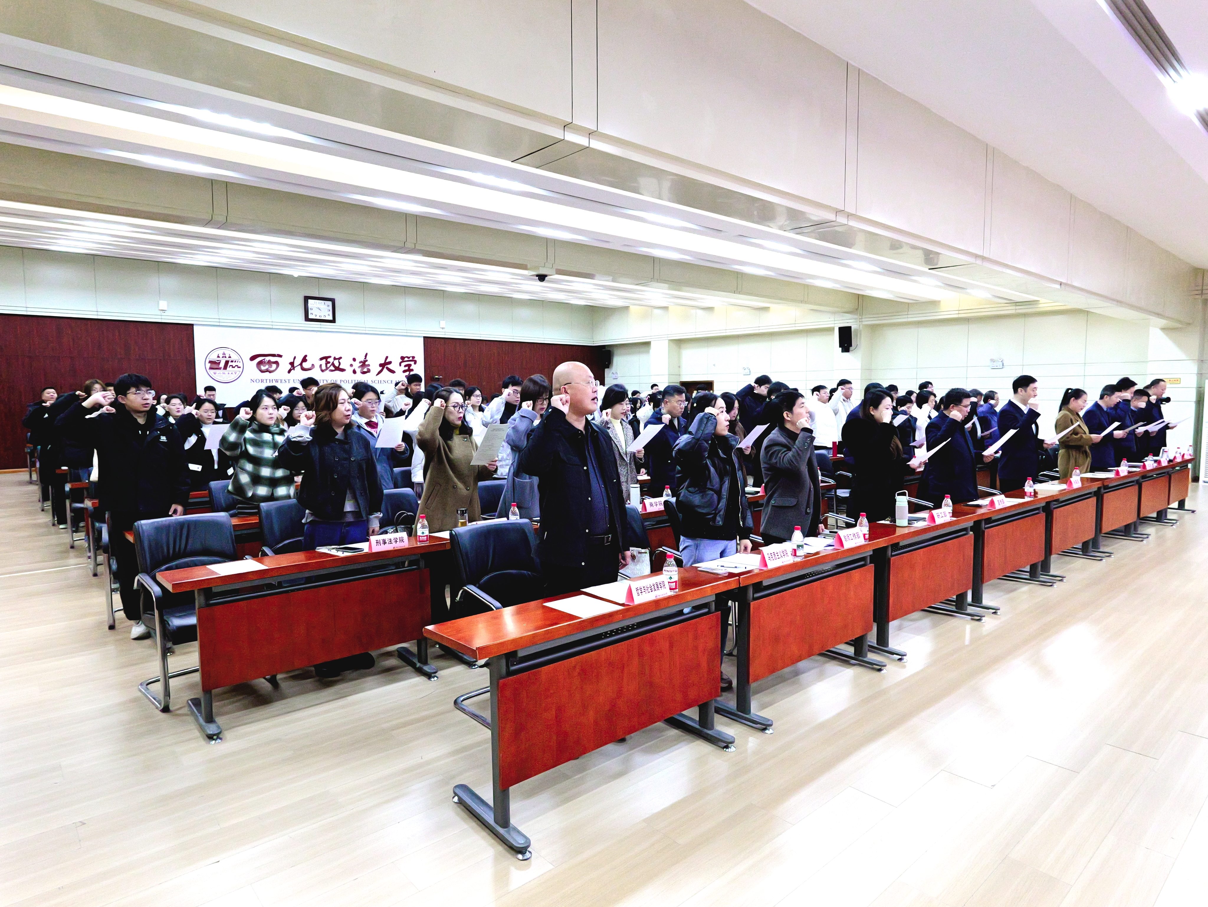 活动分两个阶段进行。第一阶段,全体参会师生观看了国家宪法日宣传片,在经济学院2024级卫文斌同学的带领下,郑重宣誓:“忠于中华人民共和国宪法,维护宪法权威,履行法定职责,忠于祖国、忠于人民,恪尽职守、廉洁奉公,接受人民监督,为建设富强民主文明和谐美丽的社会主义现代化强国努力奋斗!”;第二阶段,全体参会人员同步线上参与全国青少年普法网络直播,进行线上宪法晨读。