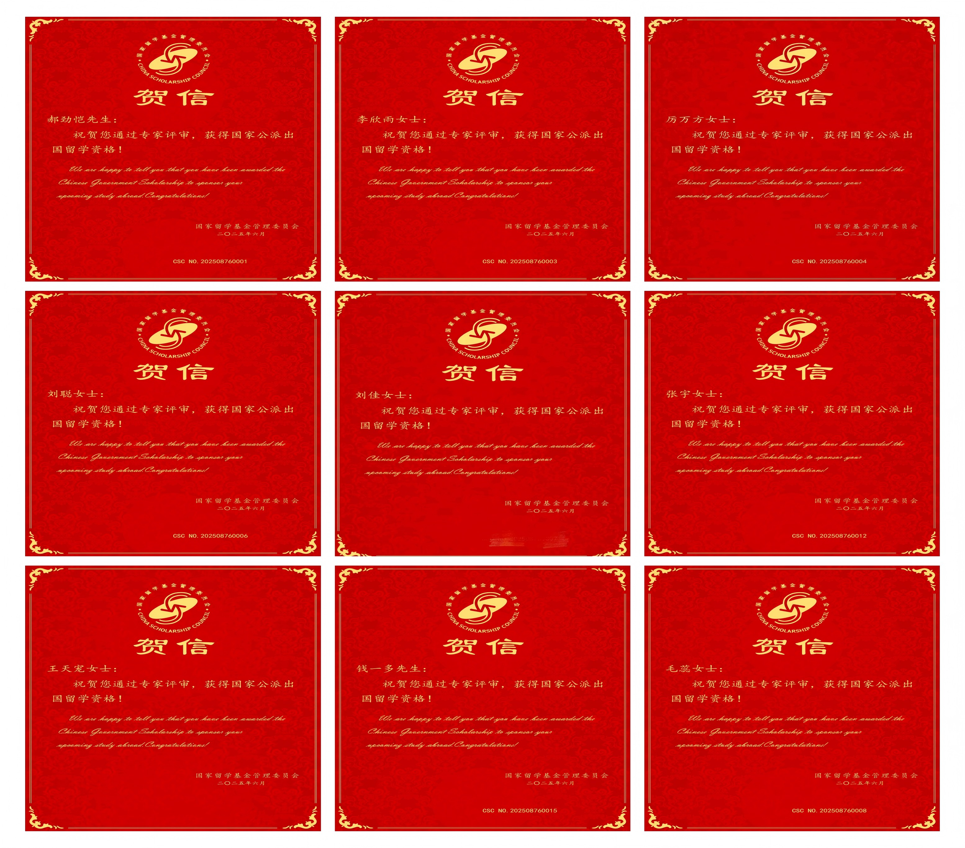 近日,国家留学基金管理委员会(以下简称留基委)公布2025年“国际组织后备人才培养项目”录取结果,beat365选拔推荐的15名硕士研究生均被成功录取,获得留基委全额资助。根据项目安排,学生将于今年8月赴国外合作院校攻读法学第二硕士学位,留基委提供全额学费、一次往返国际旅费和资助期限内的奖学金资助。