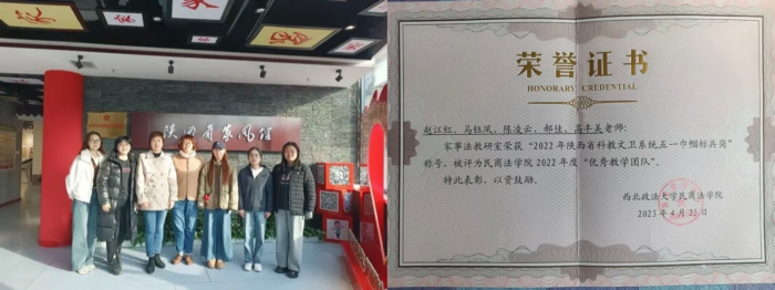 家事法教研室获得陕西省教科文卫系统巾帼标兵岗(集体),1人获得陕西省“五一劳动奖章”,1人入选陕西省杰出青年人才支持计划,2人获得校级教学名师荣誉称号。主持完成国家社科基金项目4项,获得省部级教学科研奖6项,发表核心期刊论文20余篇,指导学生参加各类竞赛获奖10余项,为推动学院高质量发展提供了有力人才支撑。